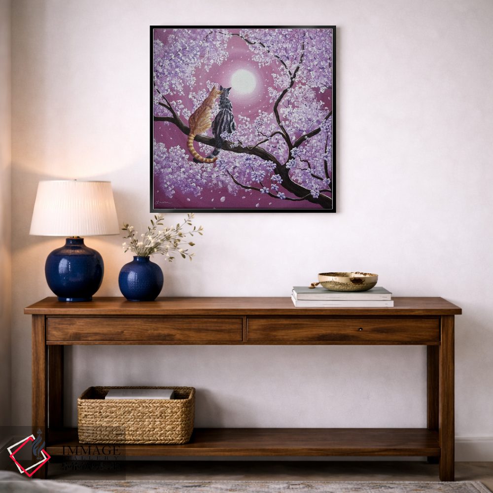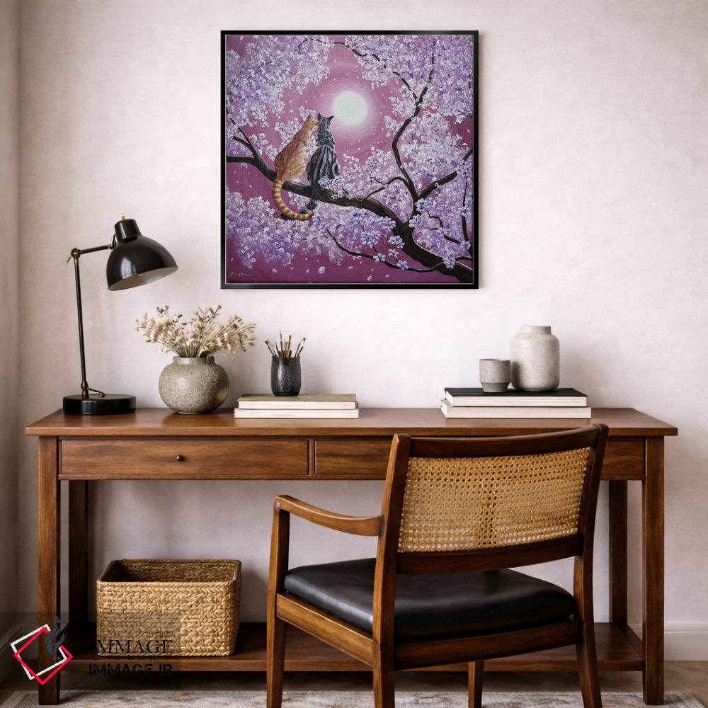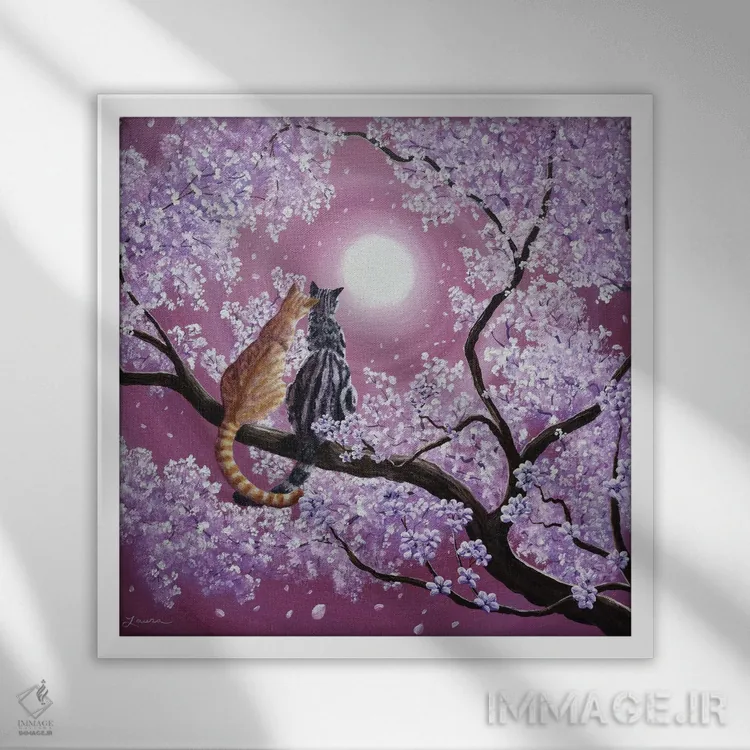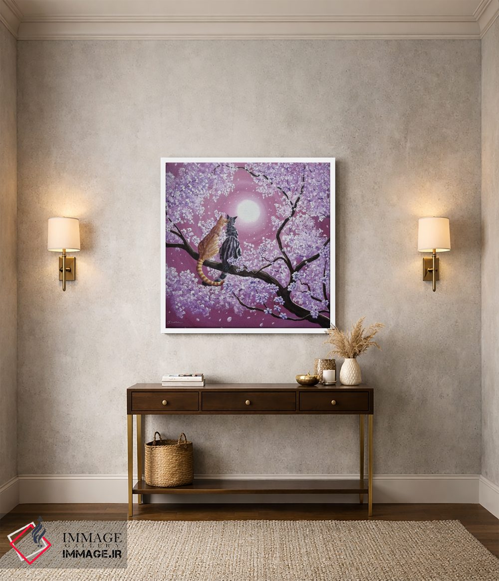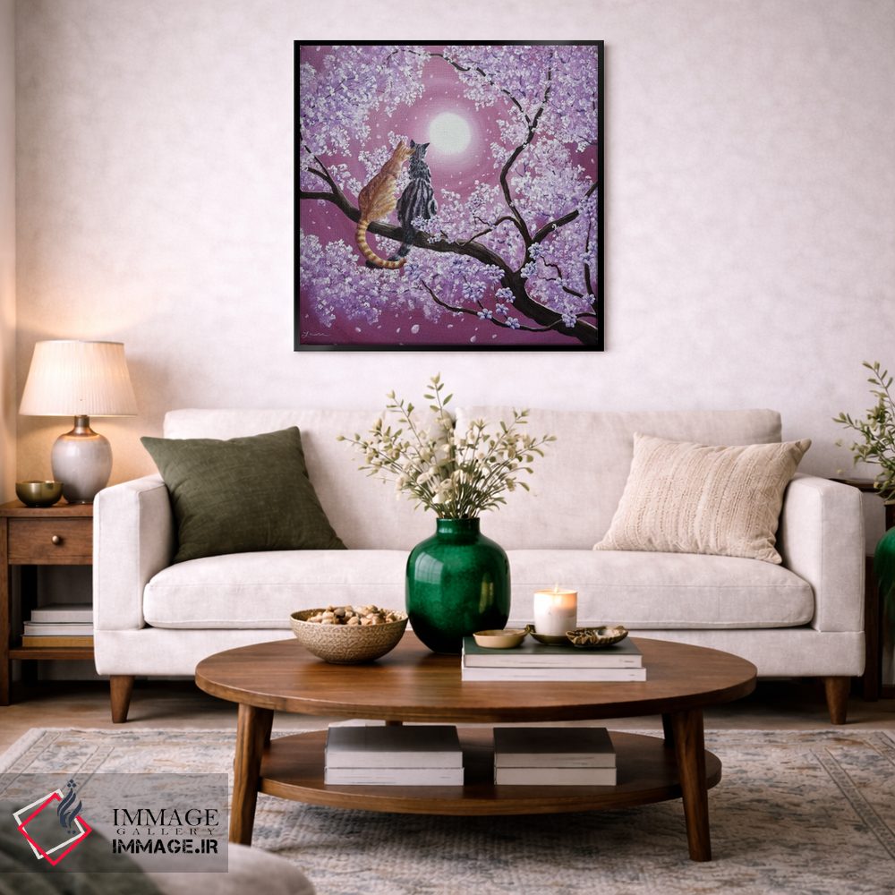 برای دکورهای صمیمی، «گربههای تابیت نارنجی و خاکستری در شکوفههای گیلاس» اثرِ «لورا ایورسن» مثل یک امضای بامزه اما متین عمل میکند؛ برای دیوار کنار میز کار انتخابی خوشسلیقه است. به دیوار، قصه میدهد—اما قصهای آرام و شیک.