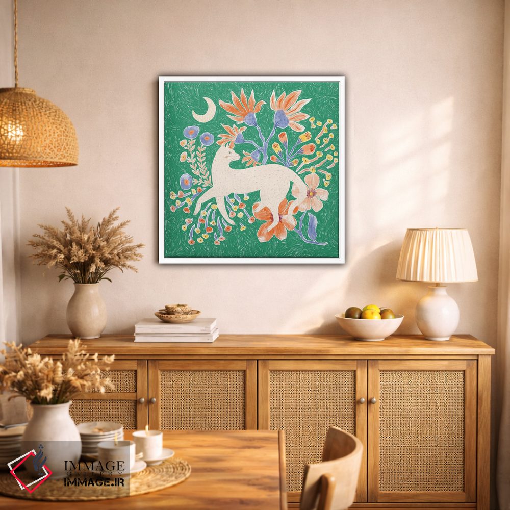 براساس پالت ترکیبی اثر، قاب تیک گرم (چوبی) پیشنهاد اول است و مشکی مات (فریم متوسط) مکمل. برای سفارشهای پروژهای با ابعاد و قابهای اختصاصی با ایماژ در تماس باشید.