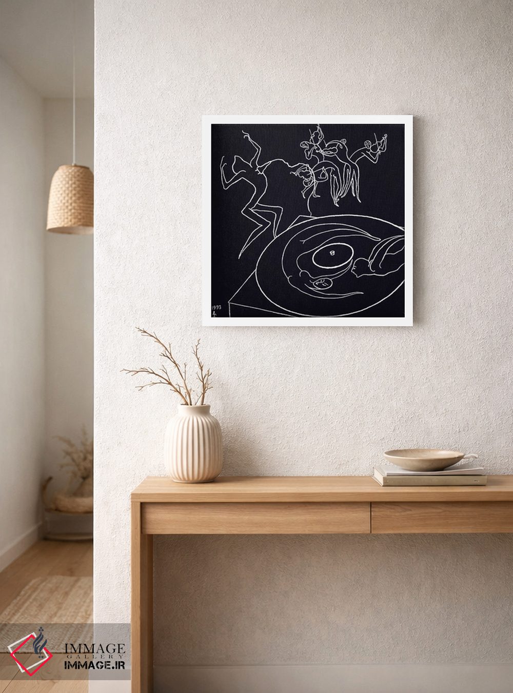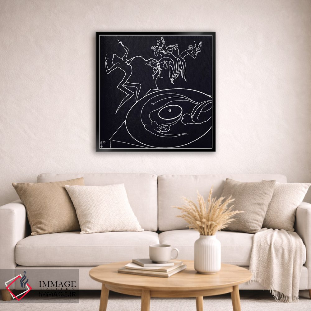 تابلو مینیمال علاقه مندان موسیقی اثر لیا چچلاشویلی - نمای قاب‌دار مشکی