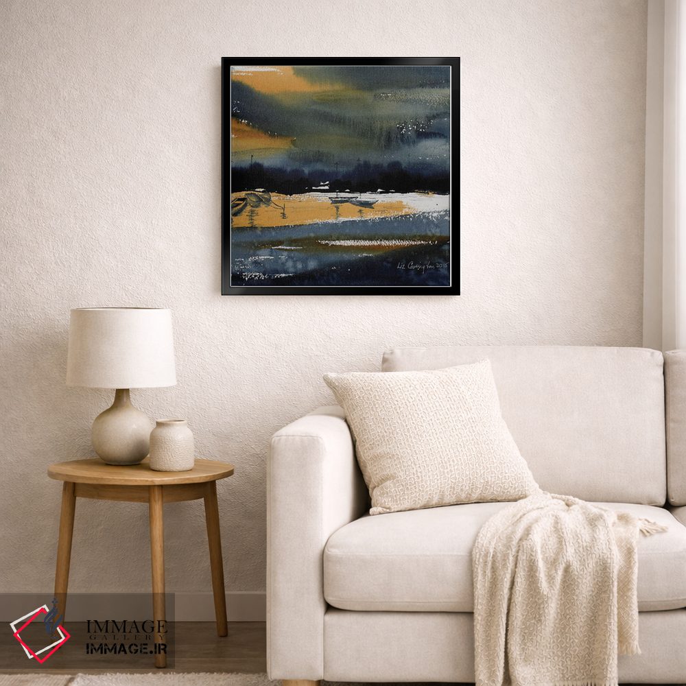 تابلو انتزاعی قایق های بندر اثر لیز کاوینگتون - نمای روبه‌رو روی دیوار