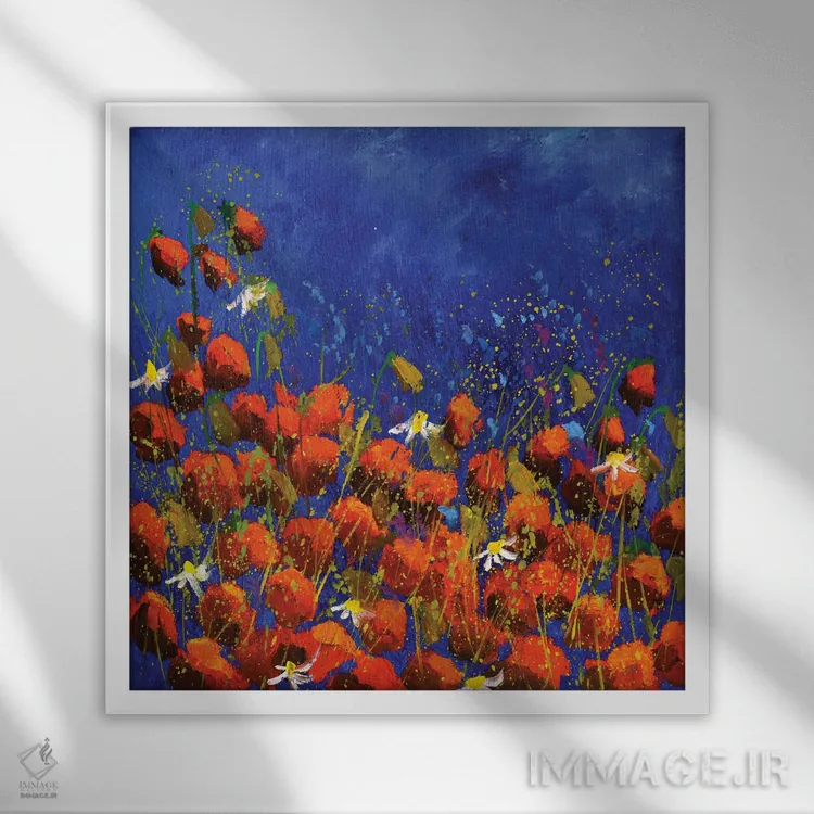 براساس پالت ترکیبی اثر، قاب تیک گرم (چوبی) پیشنهاد اول است و مشکی مات (فریم متوسط) مکمل. برای سفارشهای پروژهای با ابعاد و قابهای اختصاصی با ایماژ در تماس باشید.