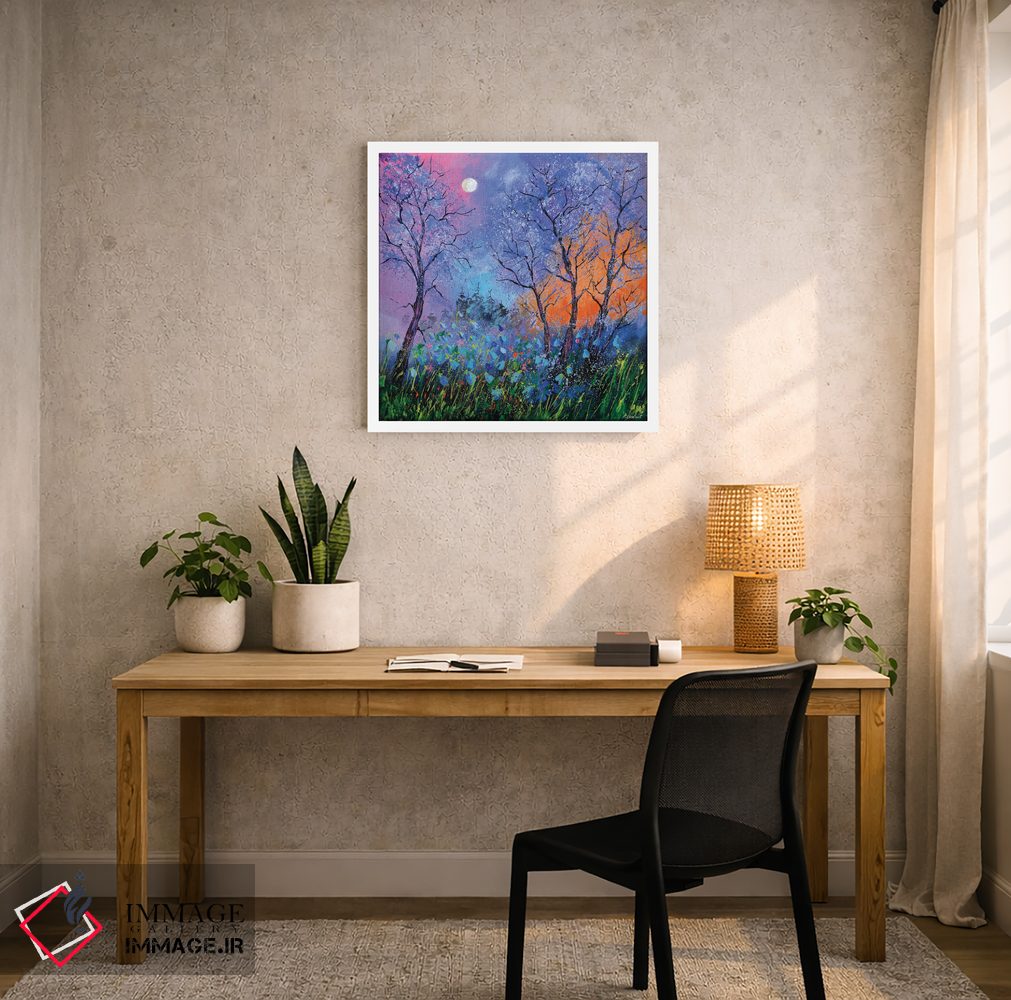 اگر ابعاد دیوار را دارید، راهنمایی لازم را دریافت میکنید تا نتیجه حرفهایتر دیده شود. اگر قرار است اثر در فضا «لوکس و رسمی» دیده شود، نور موضعی ملایم نتیجه را بهتر نشان میدهد و جلوهی گالریوار بیشتری میدهد.