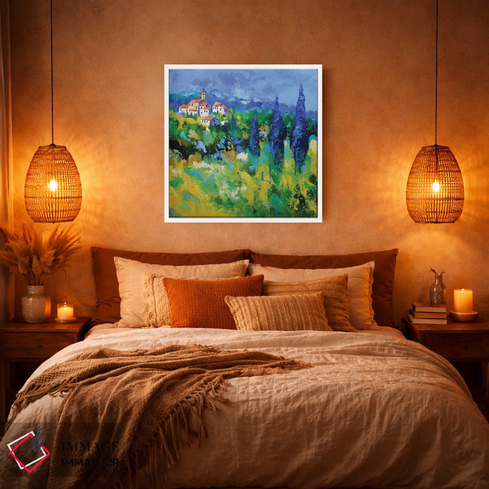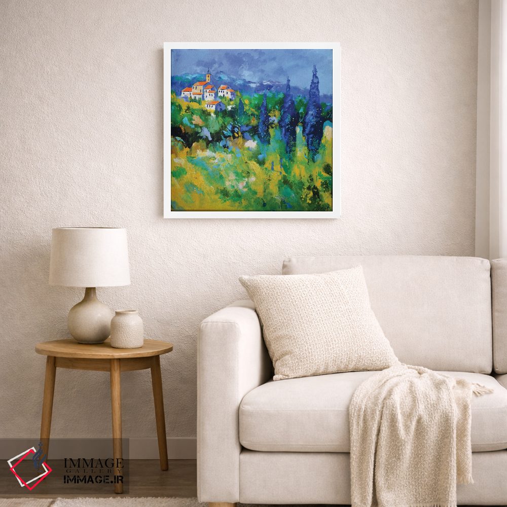 براساس پالت ترکیبی اثر، قاب تیک گرم (چوبی) پیشنهاد اول است و مشکی مات (فریم متوسط) مکمل. برای سفارشهای پروژهای با ابعاد و قابهای اختصاصی با ایماژ در تماس باشید.