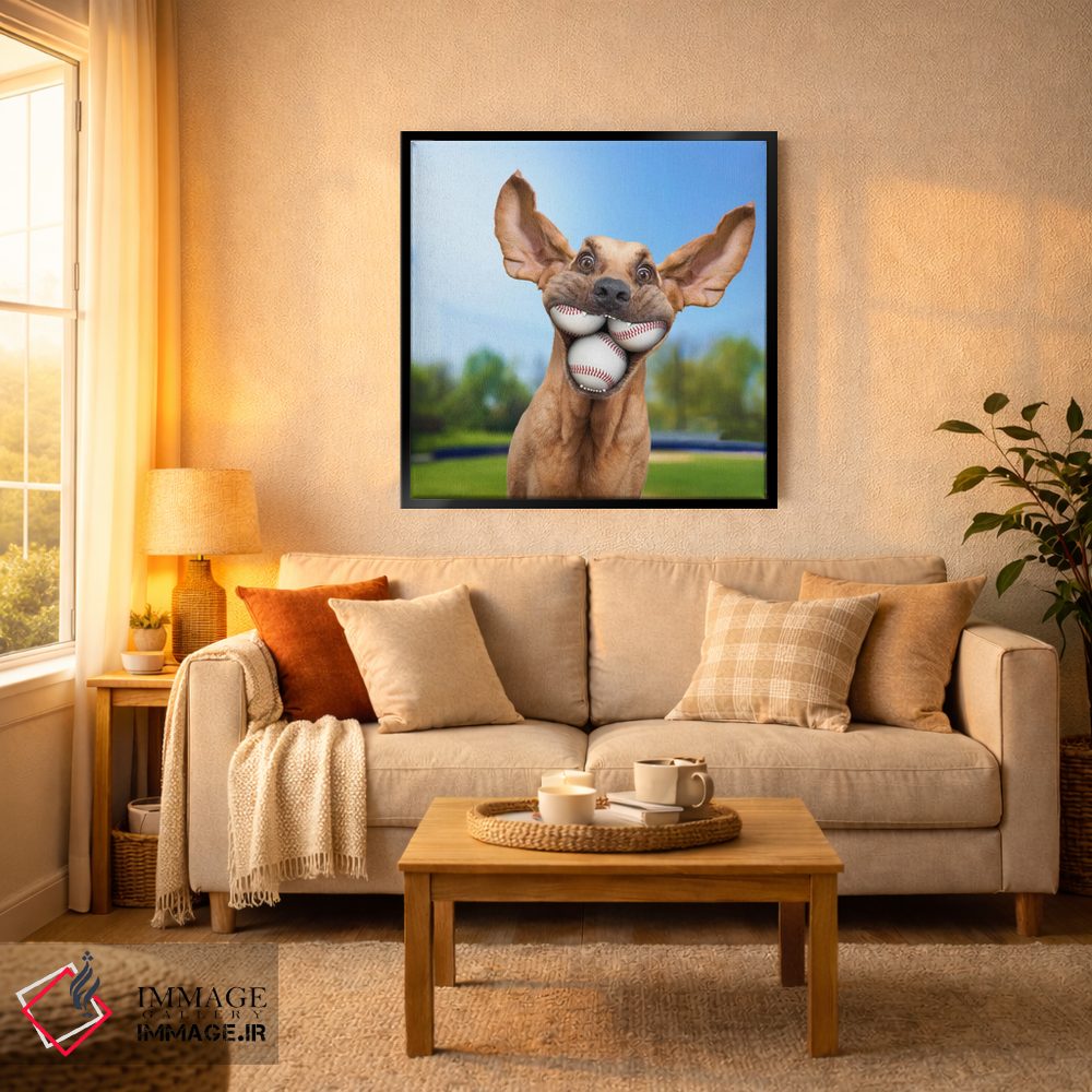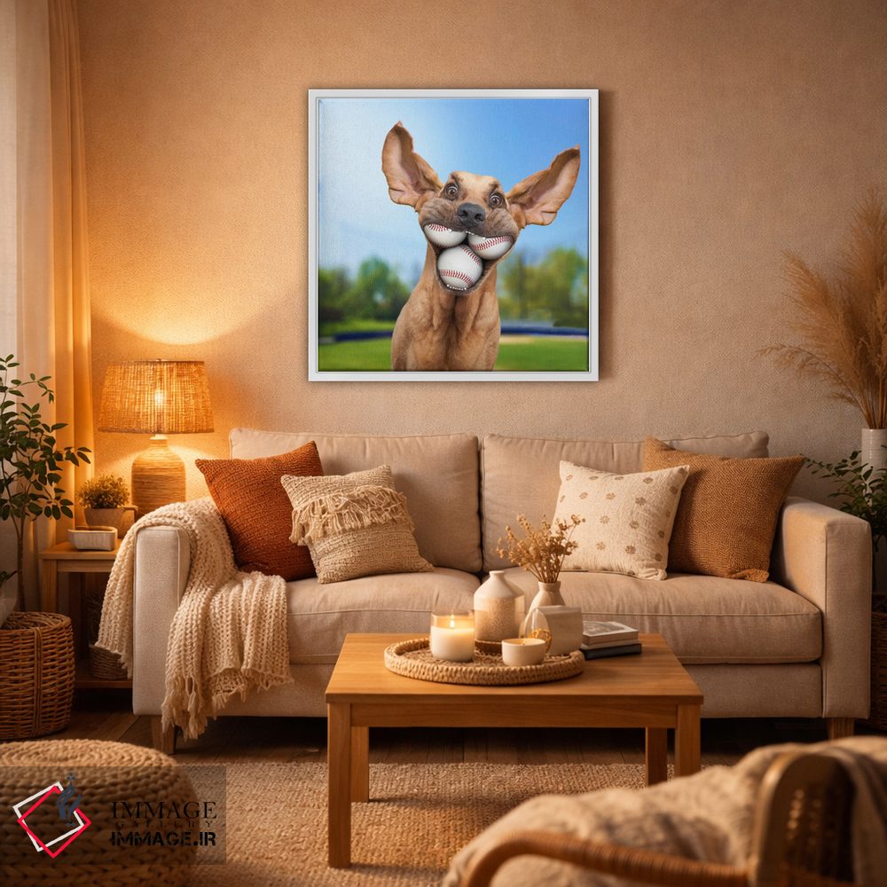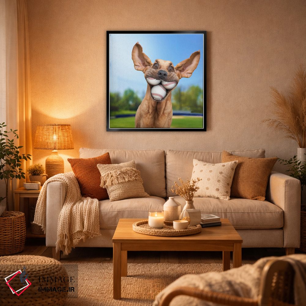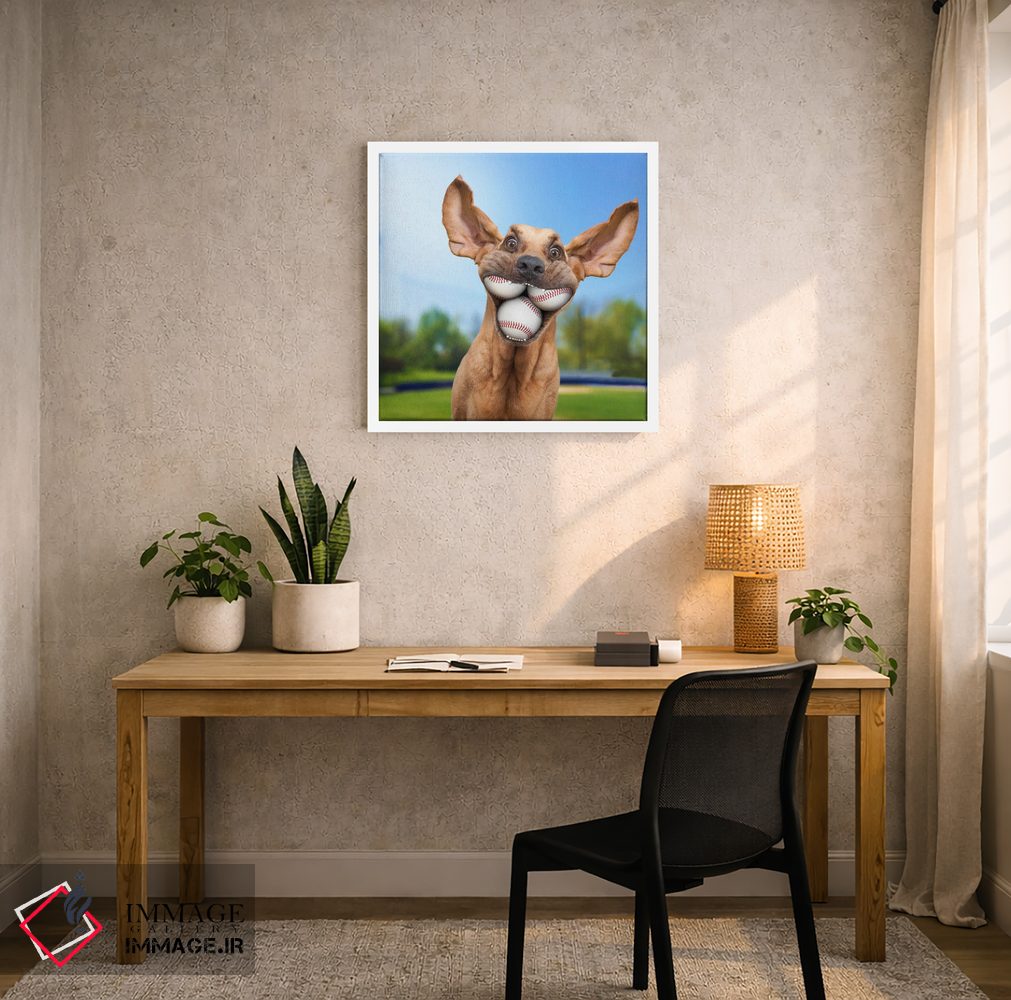 برای اتاقی که به یک عنصر دوستداشتنی نیاز دارد، «سگ توپدوست یا توپباز» اثرِ «لوند روزر» به دیوار، انرژیِ نرم و زنده میدهد؛ برای کافههای کوچک و صمیمی انتخابی خوشسلیقه است. هر بار نگاهش میکنید، یک جزئیات تازه به چشم میآید.