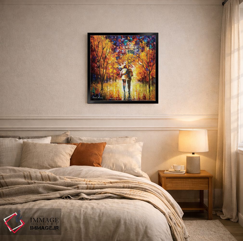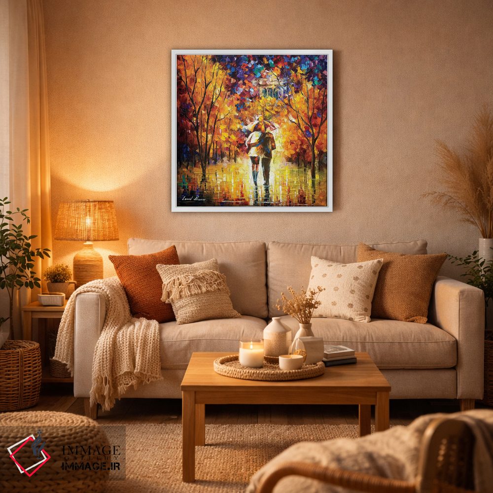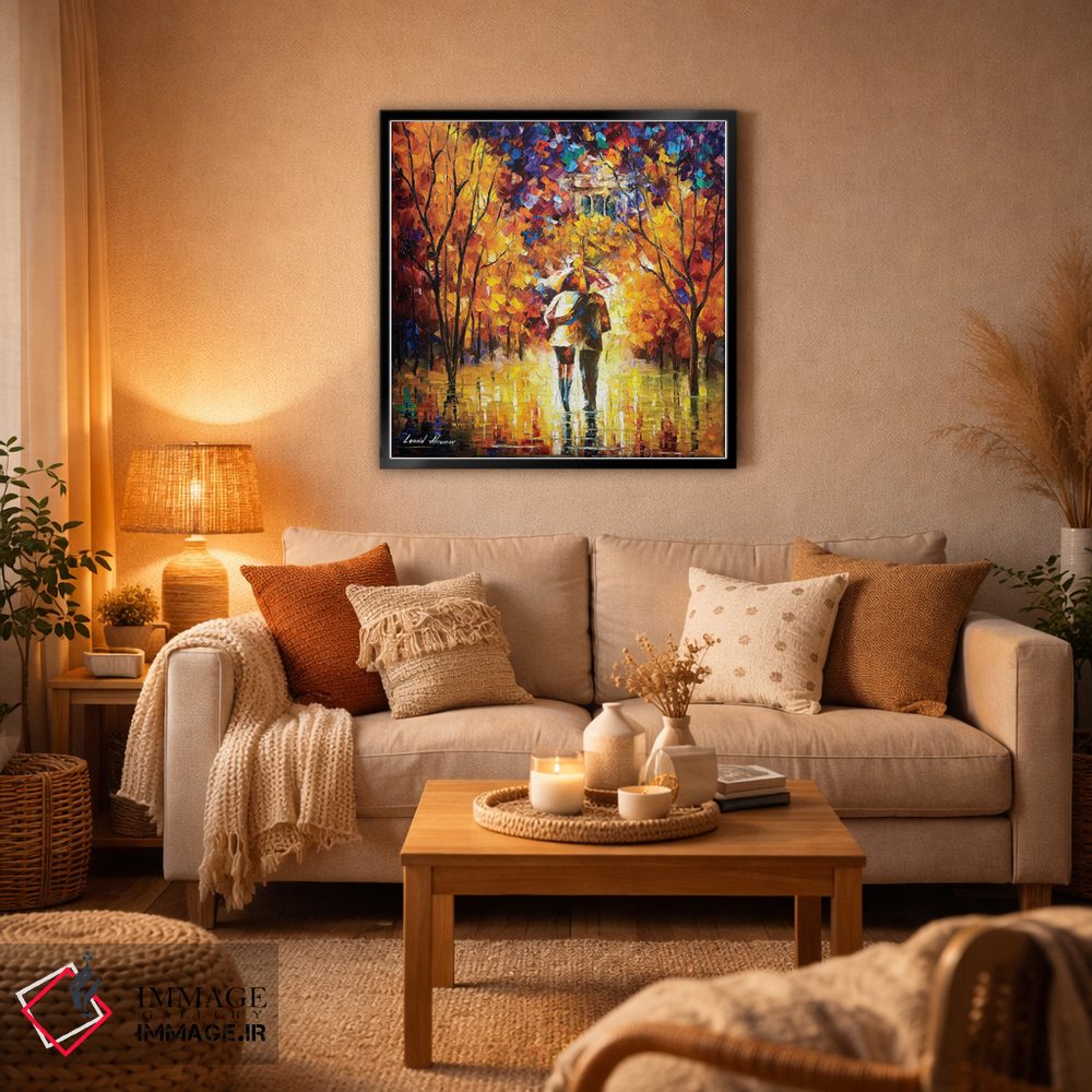 براساس پالت ترکیبی اثر، قاب تیک گرم (چوبی) پیشنهاد اول است و مشکی مات (فریم متوسط) مکمل. برای سفارشهای پروژهای با ابعاد و قابهای اختصاصی با ایماژ در تماس باشید.