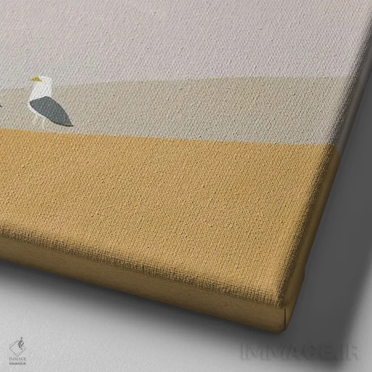 تابلو مینیمال مرغان دریایی در ساحل اثر لیتل باور - نمای نزدیک بافت بوم