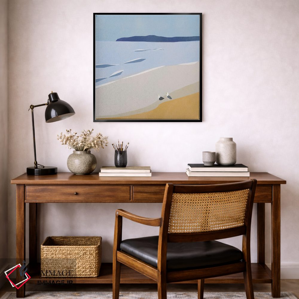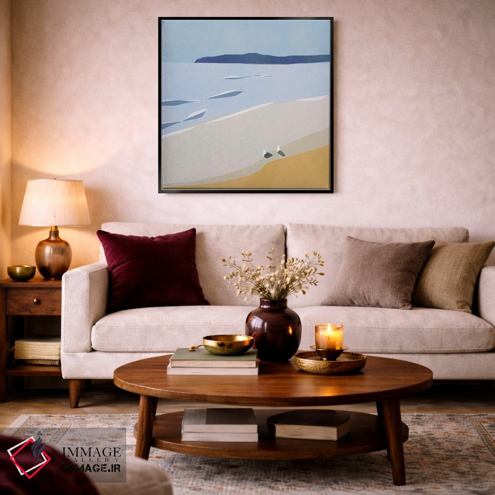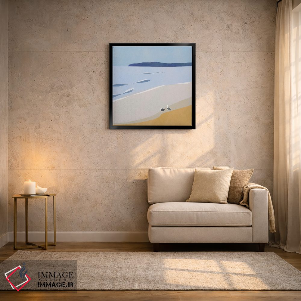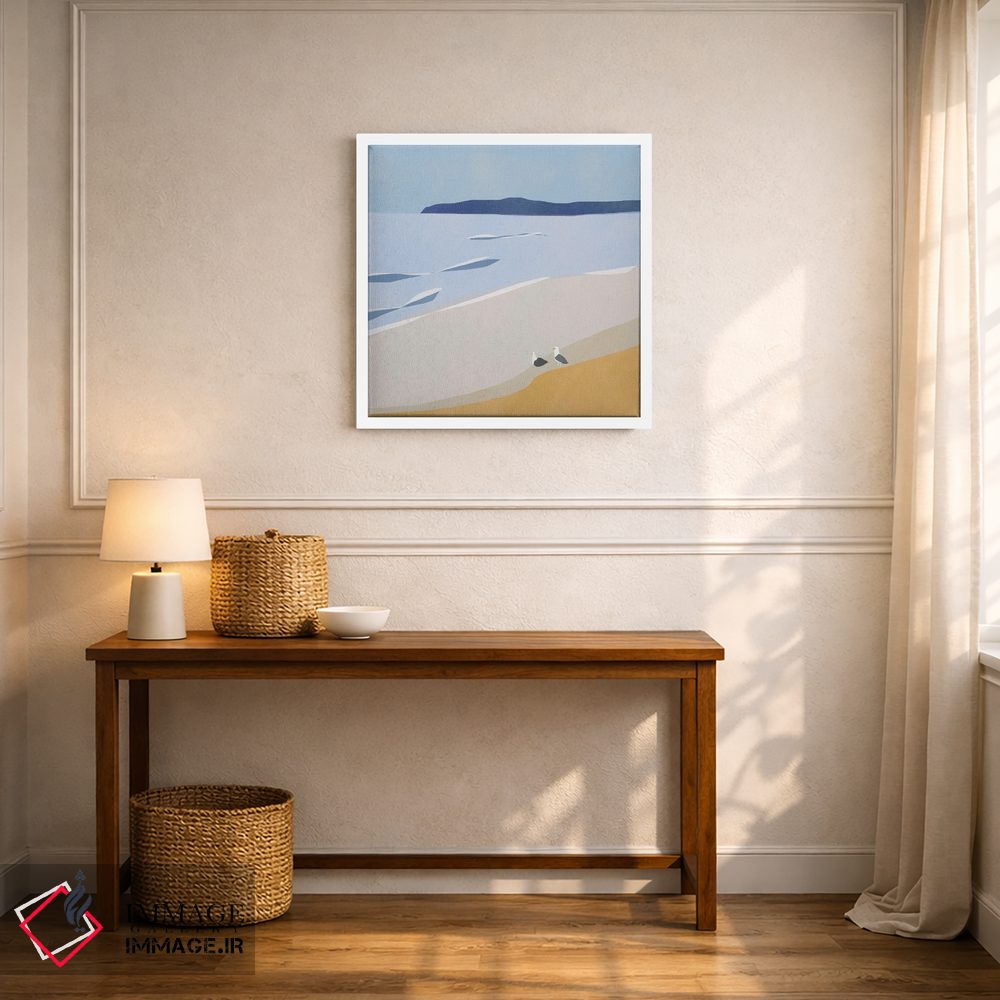 تابلو مینیمال مرغان دریایی در ساحل اثر لیتل باور - نمای روبه‌رو روی دیوار