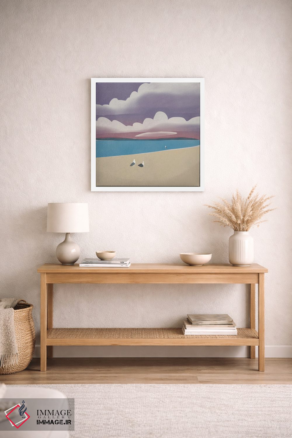 برای دیوارهای ساده، «سه مرغ دریایی» اثرِ «لیتل باور (نام هنری)» در کنار رنگهای خنثی، تضاد دلچسبی میسازد؛ برای نشیمنهای خانوادگی انتخابی خوشسلیقه است. حسش صمیمی است، اما کیفیتش جدی و خوشپرداخت.