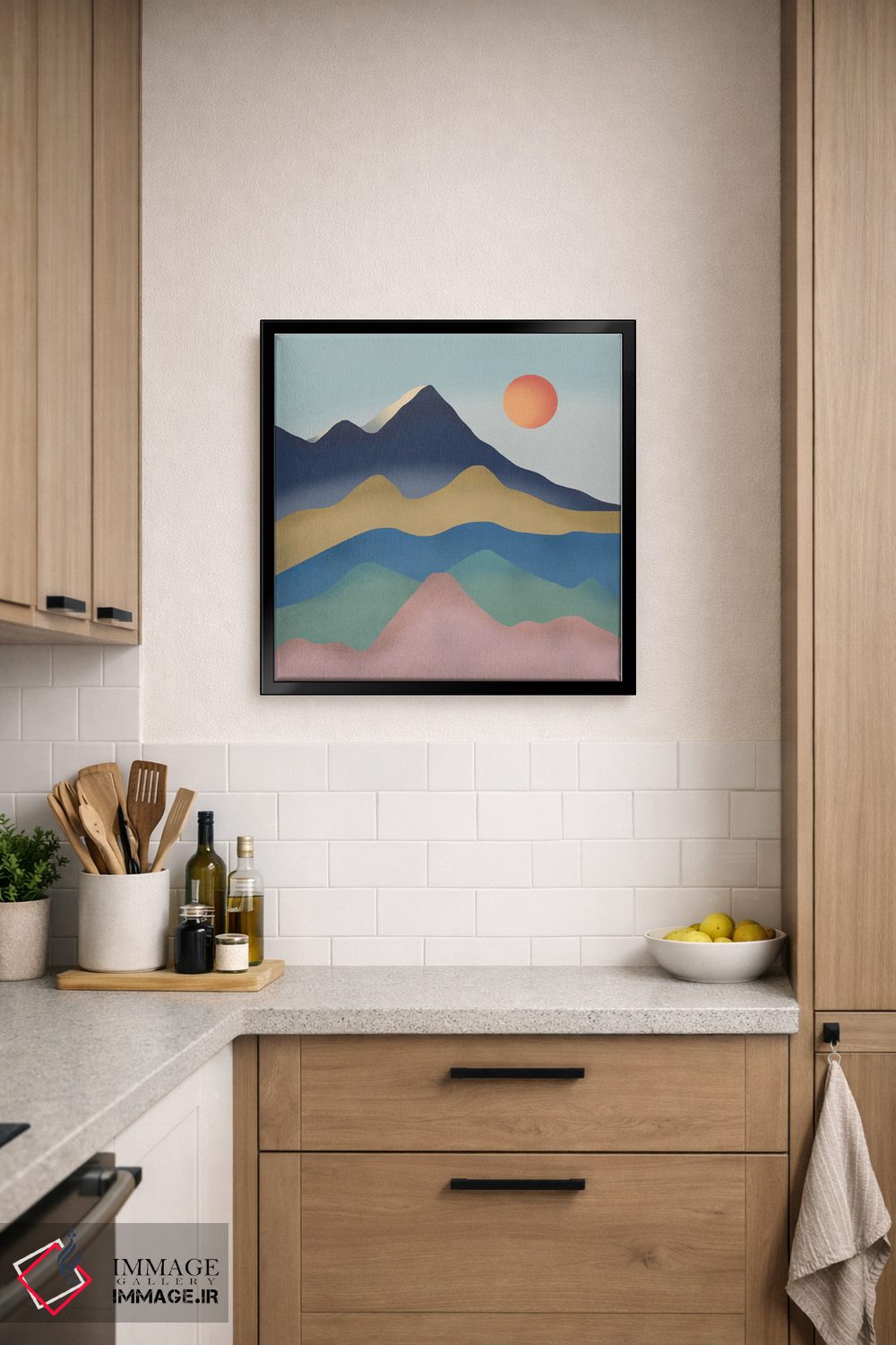 براساس پالت ترکیبی اثر، قاب تیک گرم (چوبی) پیشنهاد اول است و مشکی مات (فریم متوسط) مکمل. برای سفارشهای پروژهای با ابعاد و قابهای اختصاصی با ایماژ در تماس باشید.