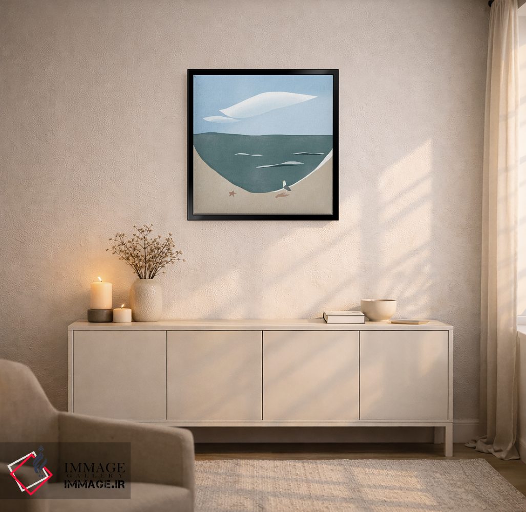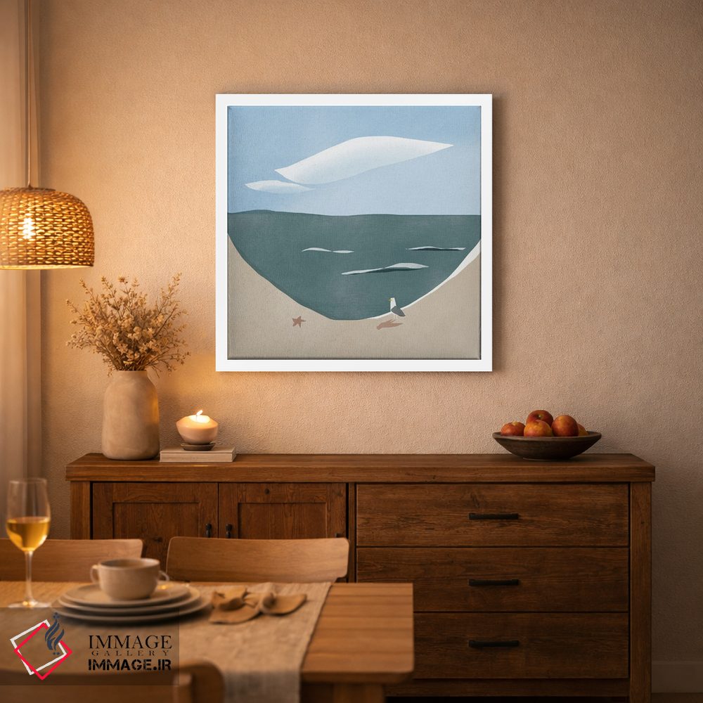 برای اتاقی که به یک عنصر دوستداشتنی نیاز دارد، «انحنای ساحل و مرغ دریایی» اثرِ «لیتل باور (نام هنری)» در کنار رنگهای خنثی، تضاد دلچسبی میسازد؛ برای دکورهایی با رنگهای خنثی انتخابی خوشسلیقه است. هم فضا را گرم میکند، هم شلوغش نمیکند.