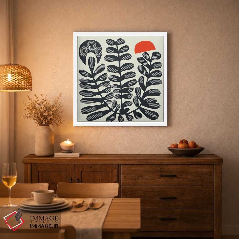 براساس پالت گرم اثر، قاب تیک گرم (چوبی) پیشنهاد اول است و مشکی مات (فریم متوسط) مکمل. برای سفارشهای پروژهای با ابعاد و قابهای اختصاصی با ایماژ در تماس باشید.