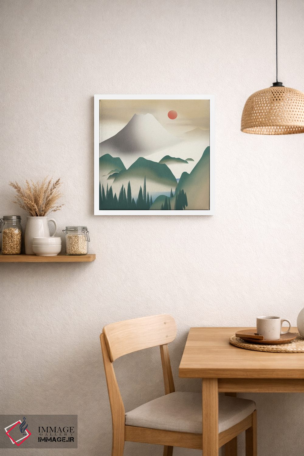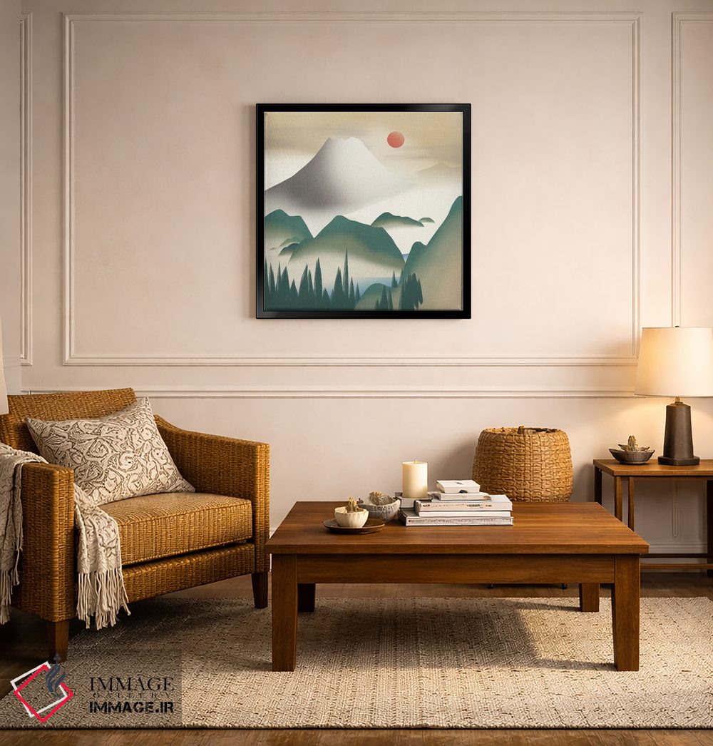براساس پالت سرد اثر، قاب بلوط روشن (چوبی) پیشنهاد اول است و استخوانی ملایم مکمل. برای سفارشهای پروژهای با ابعاد و قابهای اختصاصی با ایماژ در تماس باشید.