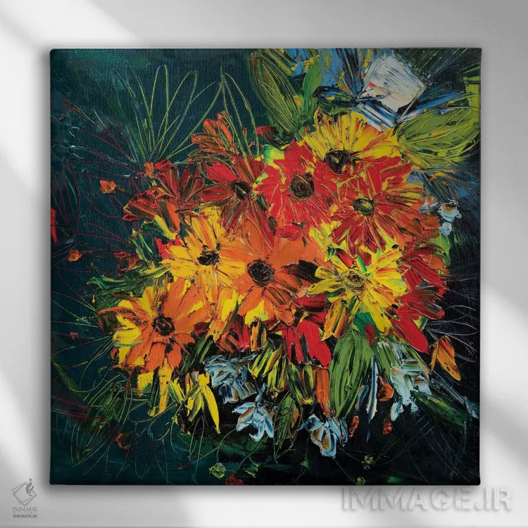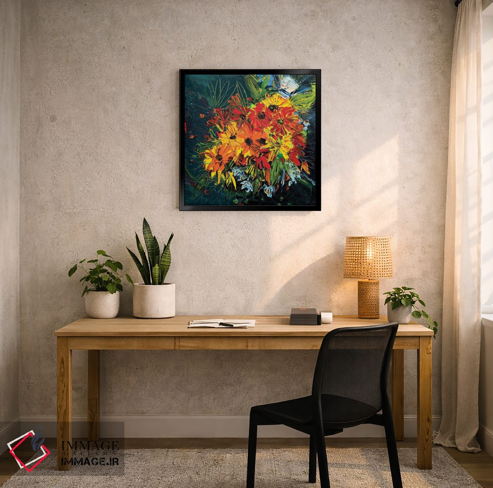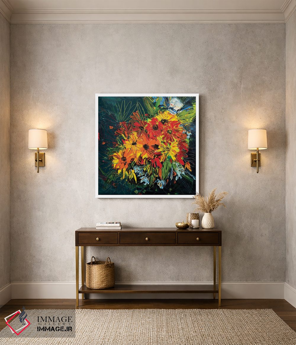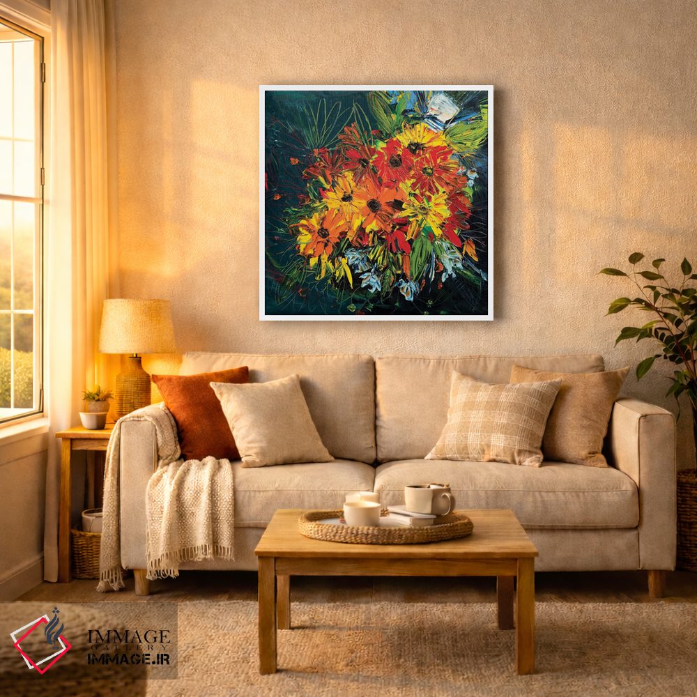 ساختار بوم گالری ایماژ طوری است که اثر روی دیوار «پرداختشده» و حرفهای دیده شود—نه پرزرقوبرقِ بیپایه؛ بلکه دقیق و خوشپرداخت. بافت ظریف کنواس باعث میشود حس اثر هنری را در نگاه نزدیک نگه میدارد بهخصوص وقتی نور موضعی ملایم داشته باشید. در کنترل تونها، از تند شدن ناخواستهی رنگها جلوگیری میکند بدون اغراق؛ فقط دقیقتر. حاصل کار، یک تابلو خوشنشین است که هم از دور اثرگذار است و هم از نزدیک خوشخوان؛ اگر محیط کمینهگرا است، همین پرداخت تمیز کافی است.