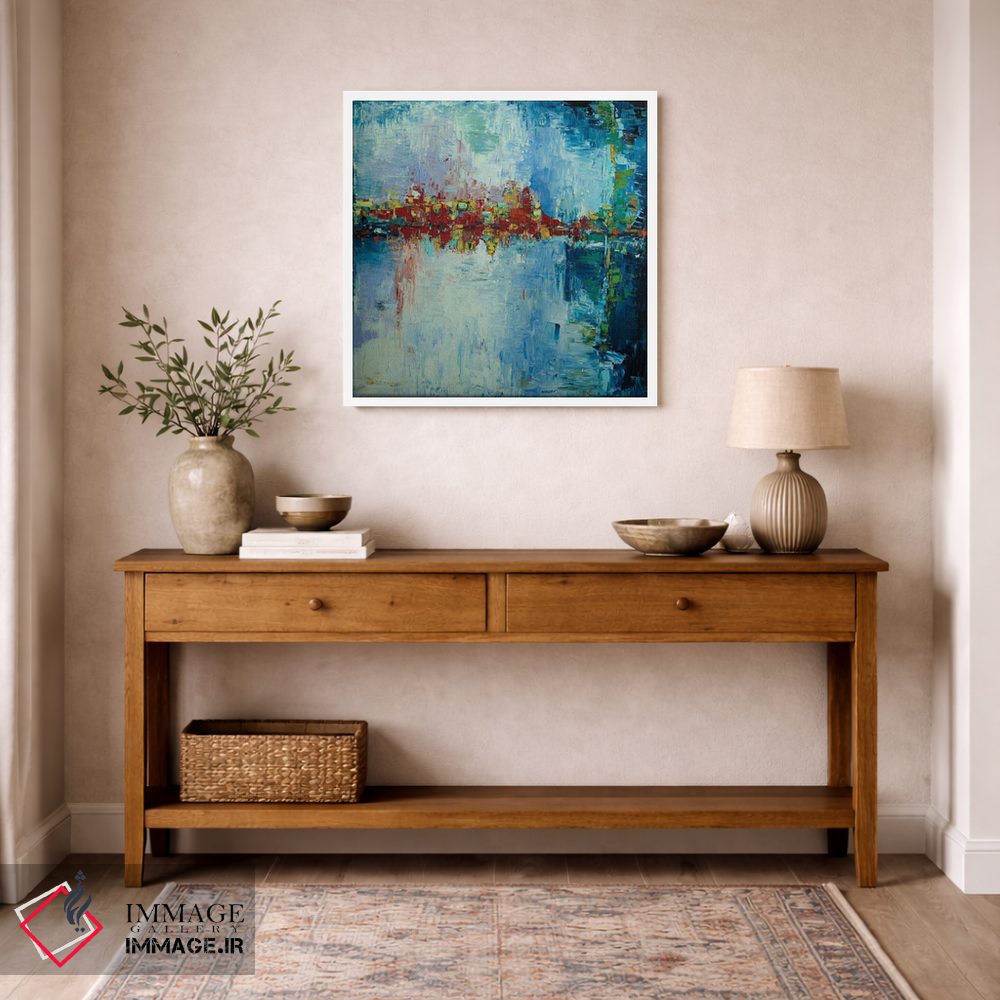 براساس پالت ترکیبی اثر، قاب تیک گرم (چوبی) پیشنهاد اول است و مشکی مات (فریم متوسط) مکمل. برای سفارشهای پروژهای با ابعاد و قابهای اختصاصی با ایماژ در تماس باشید.