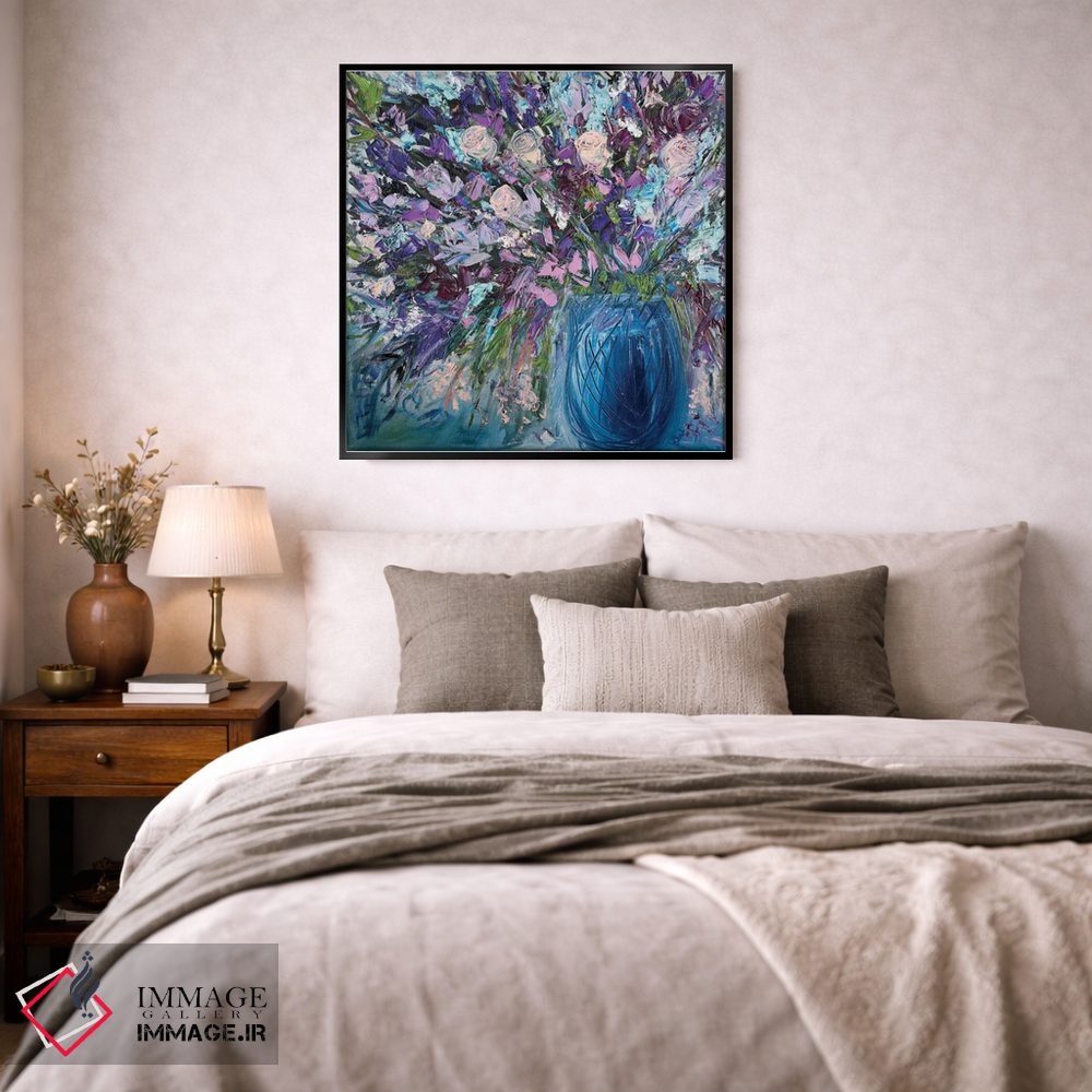 براساس پالت ترکیبی اثر، قاب تیک گرم (چوبی) پیشنهاد اول است و مشکی مات (فریم متوسط) مکمل. برای سفارشهای پروژهای با ابعاد و قابهای اختصاصی با ایماژ در تماس باشید.