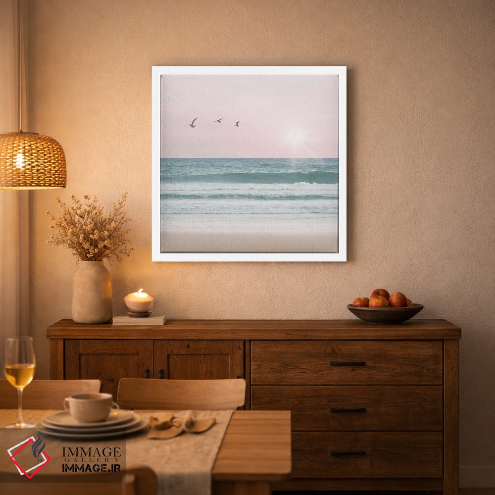 براساس پالت خنثی اثر، قاب بلوط روشن (چوبی) پیشنهاد اول است و استخوانی ملایم مکمل. برای سفارشهای پروژهای با ابعاد و قابهای اختصاصی با ایماژ در تماس باشید.