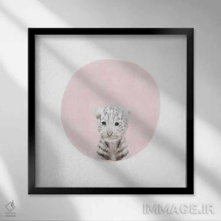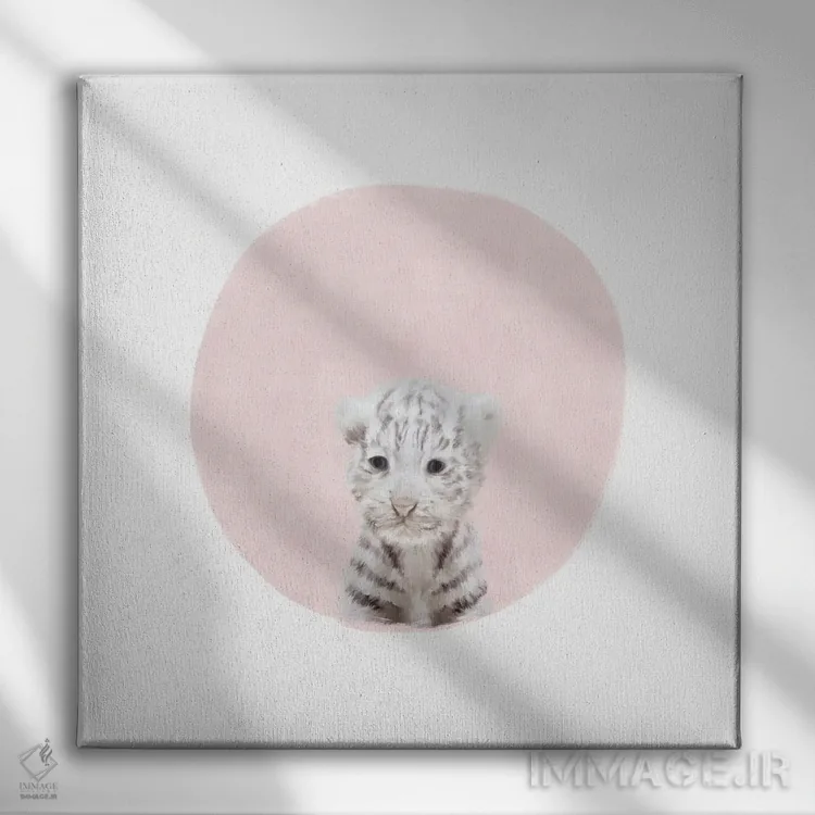 تابلو مدرن ببر سفید کوچک با رنگ صورتی اثر لیا استراتسما