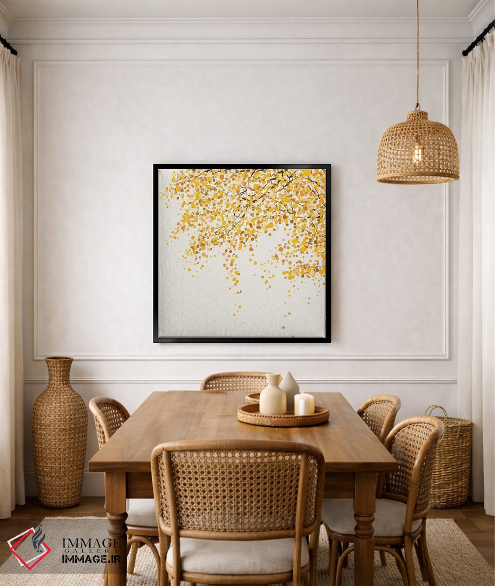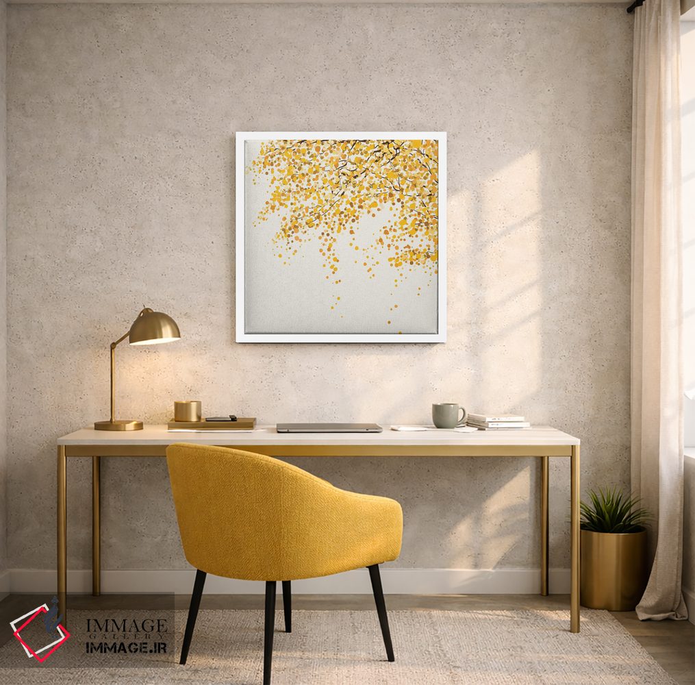 براساس پالت گرم اثر، قاب تیک گرم (چوبی) پیشنهاد اول است و مشکی مات (فریم متوسط) مکمل. برای سفارشهای پروژهای با ابعاد و قابهای اختصاصی با ایماژ در تماس باشید.