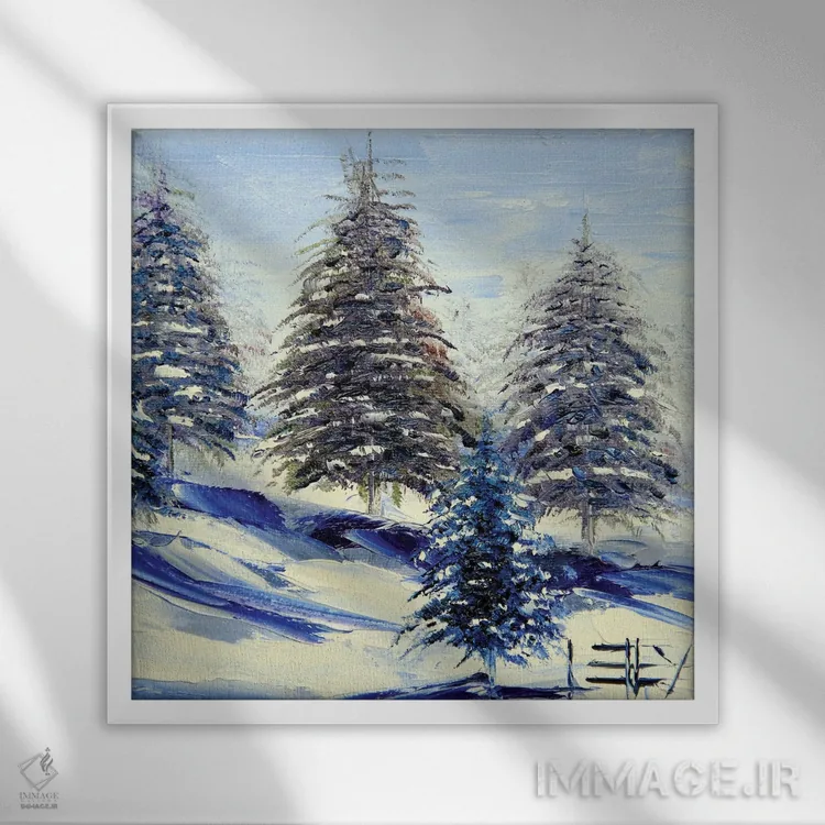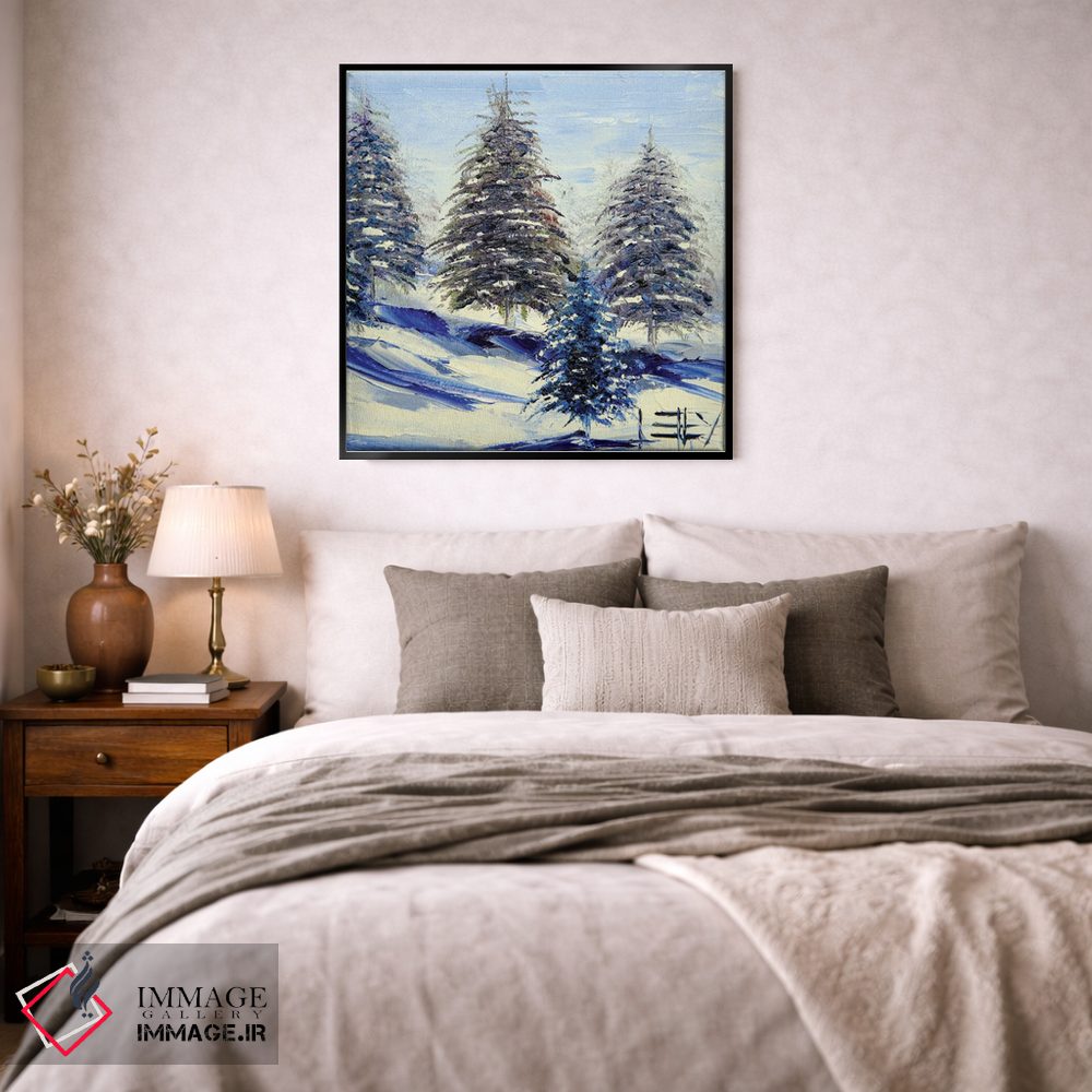 براساس پالت سرد اثر، قاب سفید مات (فریم باریک) پیشنهاد اول است و نقرهای برسخورده (متالیک) مکمل. برای سفارشهای پروژهای با ابعاد و قابهای اختصاصی با ایماژ در تماس باشید.
