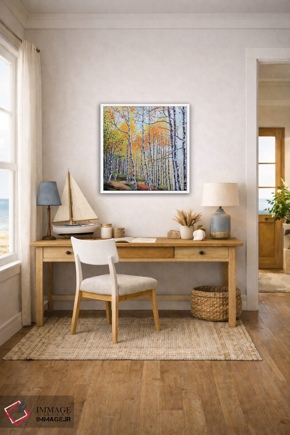 براساس پالت گرم اثر، قاب تیک گرم (چوبی) پیشنهاد اول است و مشکی مات (فریم متوسط) مکمل. برای سفارشهای پروژهای با ابعاد و قابهای اختصاصی با ایماژ در تماس باشید.