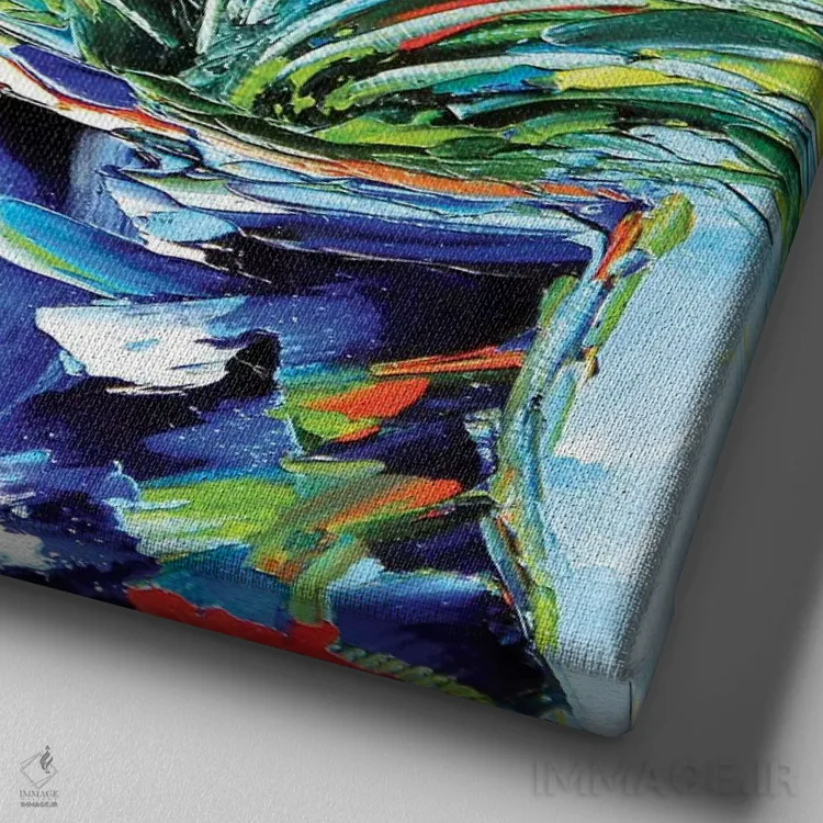 ساختار بوم گالری ایماژ طوری است که اثر روی دیوار «پرداختشده» و حرفهای دیده شود—نه پرزرقوبرقِ بیپایه؛ بلکه دقیق و خوشپرداخت. بافت ظریف کنواس کمک میکند حس اثر هنری را در نگاه نزدیک نگه میدارد و در دکورهای مدرن و کمینهگرا خیلی خوب مینشیند. چاپ جیکلی (Giclée) باعث میشود گرباورهاها را تمیزتر و طبیعیتر نشان میدهد و برای محیطهای رسمیتر هم انتخاب مطمئنی است. حاصل کار، یک تابلو خوشنشین است که هم از دور اثرگذار است و هم از نزدیک خوشخوان؛ و اگر بخواهید، میتوان چیدمان را برای گالریوال هم پیشنهاد داد.