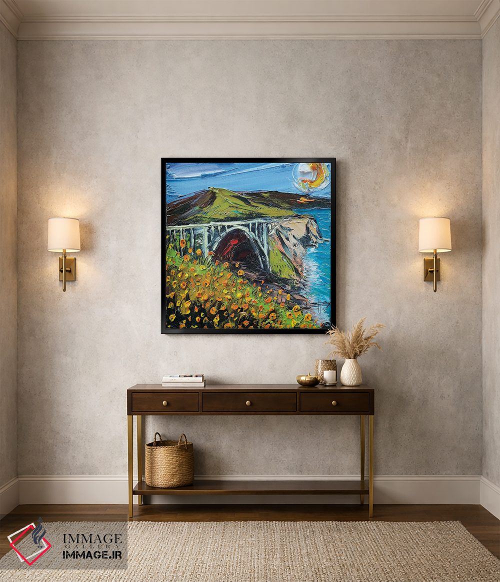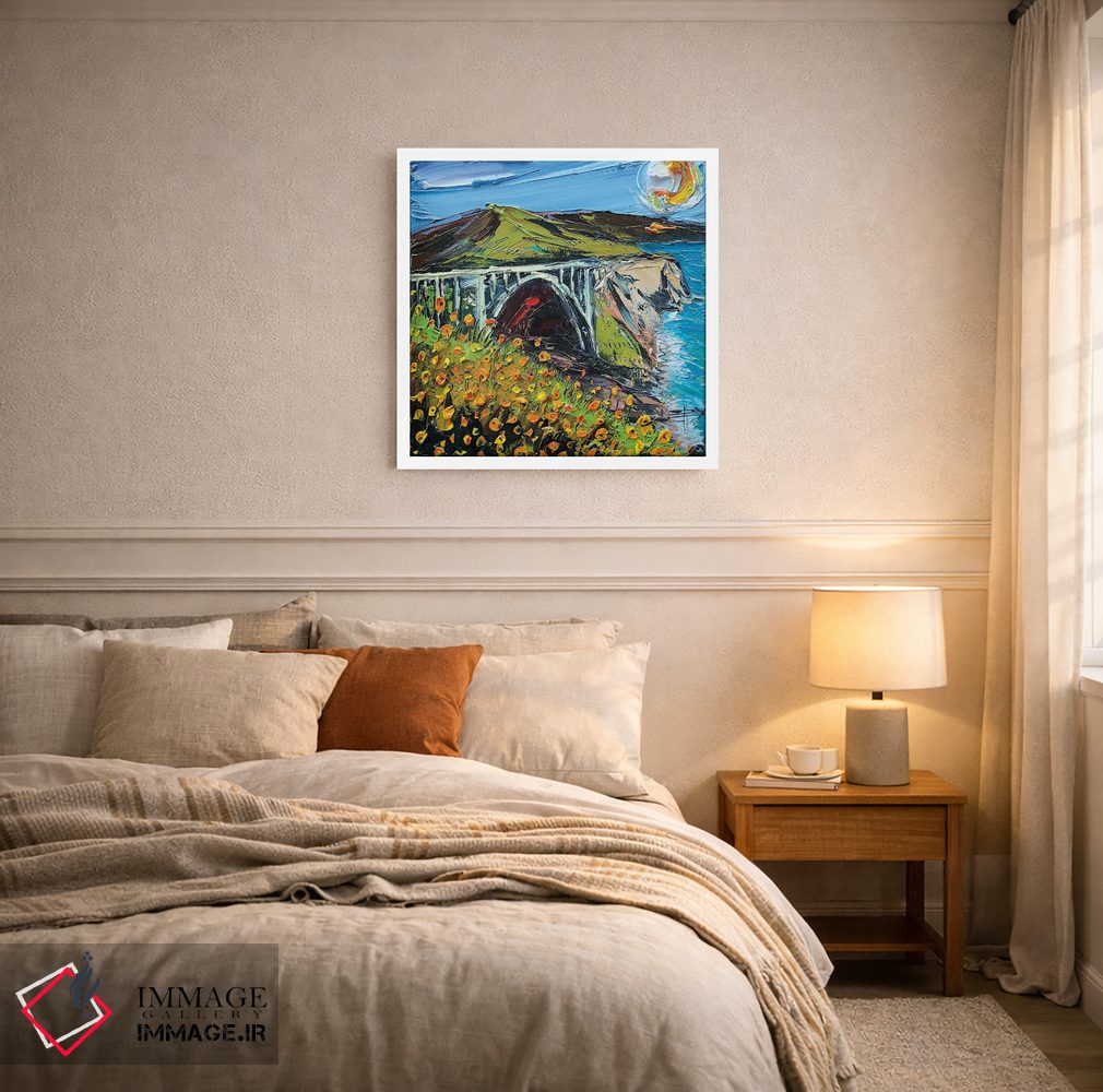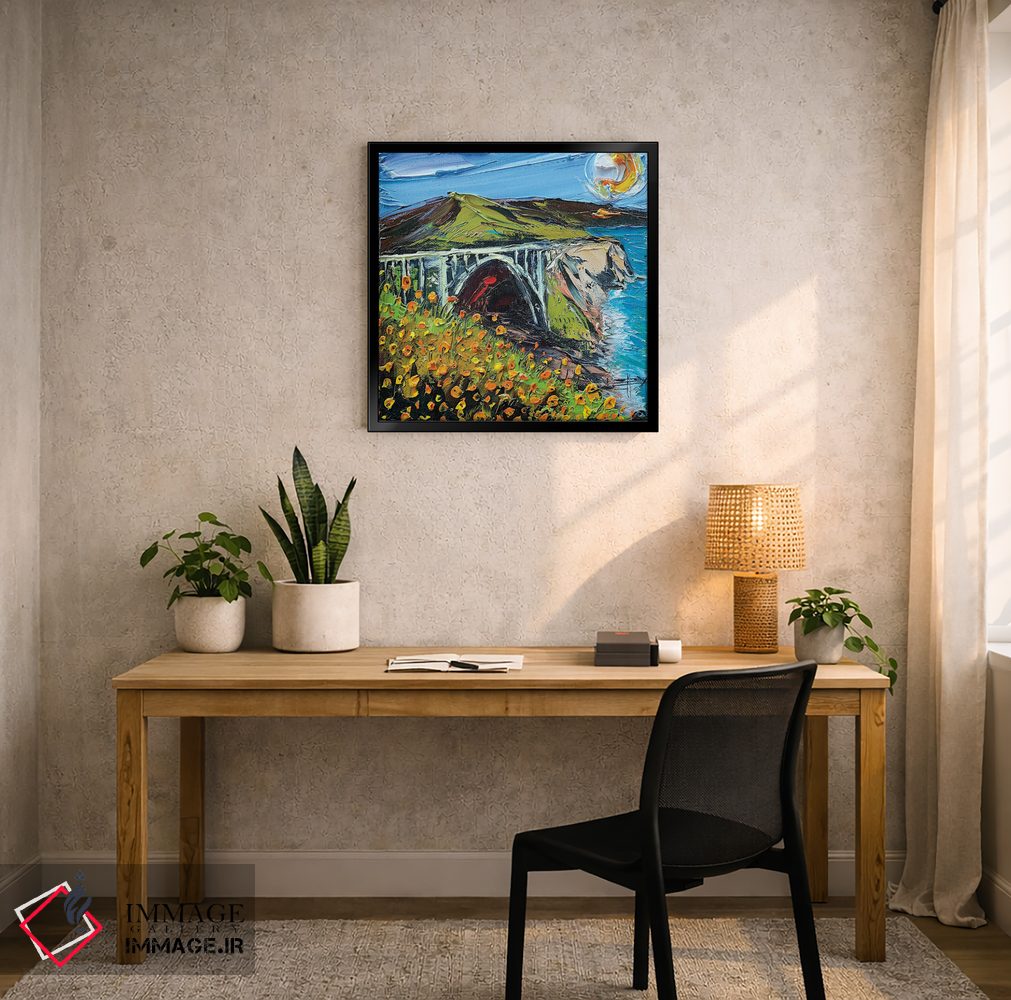 ساختار بوم گالری ایماژ طوری است که اثر روی دیوار «پرداختشده» و حرفهای دیده شود—نه پرزرقوبرقِ بیپایه؛ بلکه دقیق و خوشپرداخت. بافت ظریف کنواس کمک میکند حس اثر هنری را در نگاه نزدیک نگه میدارد و همین «پرداخت» تفاوت را میسازد. قابپذیری باعث میشود قاب مناسب مرز بصری تمیزتری به اثر میدهد. حاصل کار، یک تابلو خوشنشین است که هم از دور اثرگذار است و هم از نزدیک خوشخوان؛ اگر محیط کمینهگرا است، همین پرداخت تمیز کافی است.