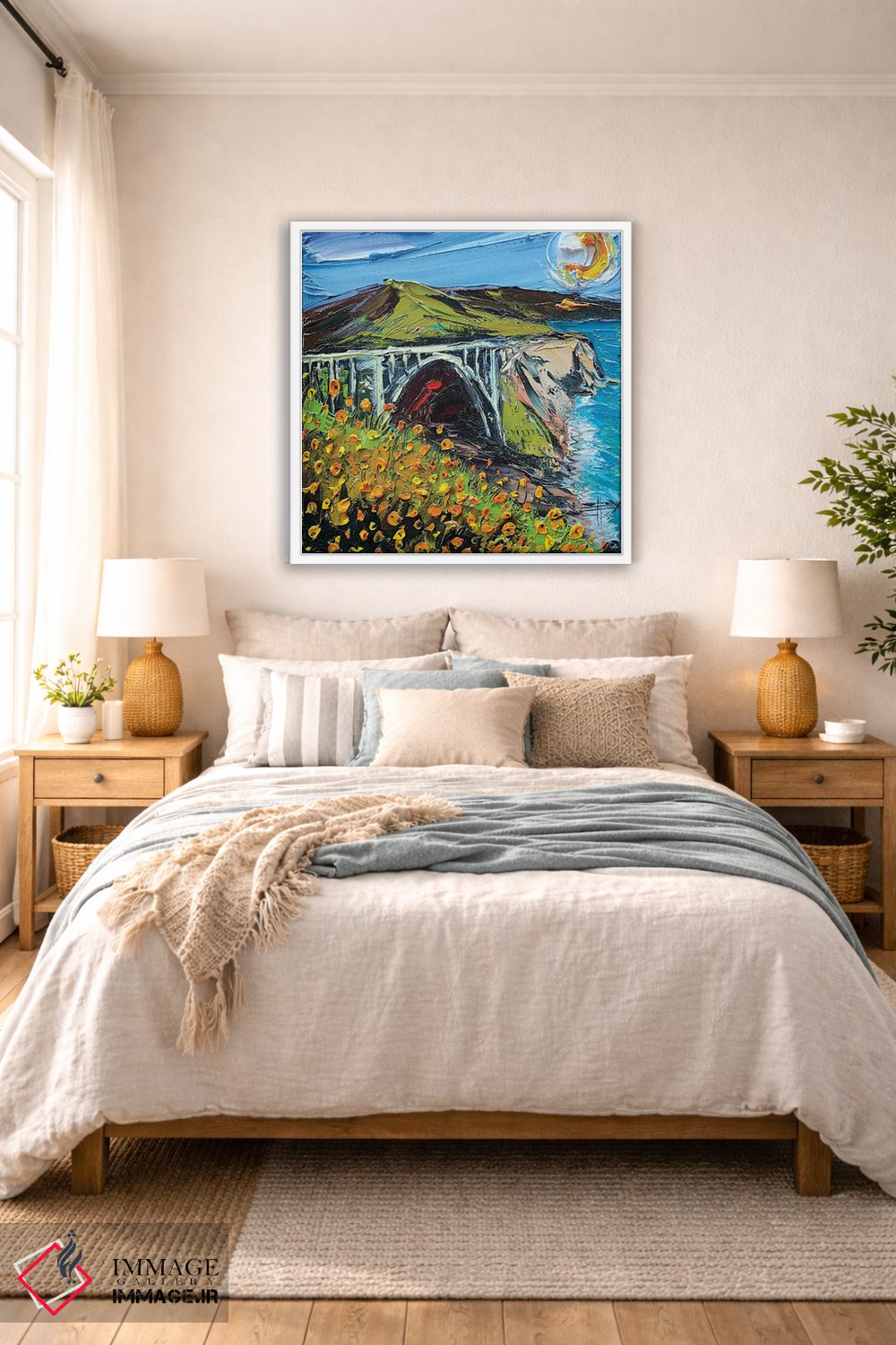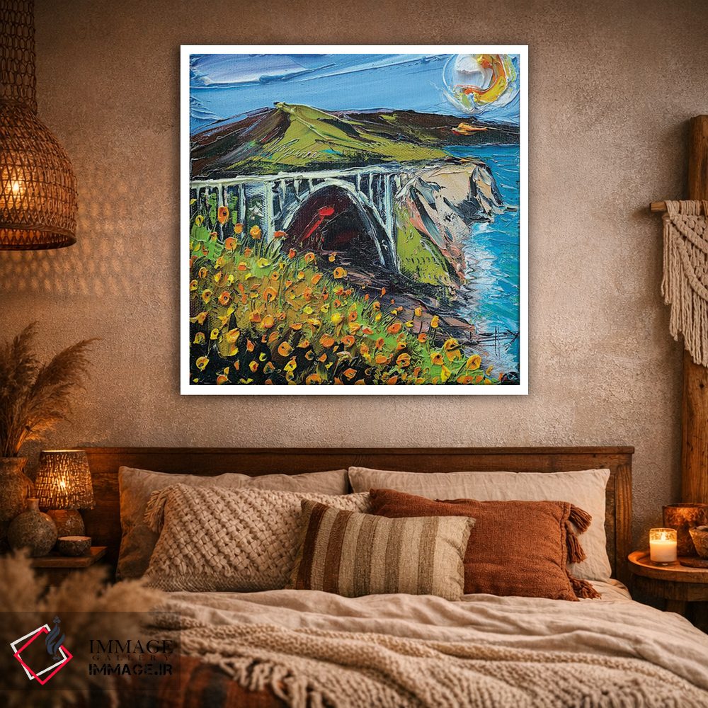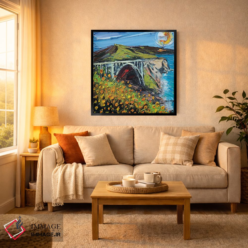 ساختار بوم گالری ایماژ طوری است که اثر روی دیوار «پرداختشده» و حرفهای دیده شود—نه پرزرقوبرقِ بیپایه؛ بلکه دقیق و خوشپرداخت. بافت ظریف کنواس کمک میکند حس اثر هنری را در نگاه نزدیک نگه میدارد و همین «پرداخت» تفاوت را میسازد. قابپذیری باعث میشود قاب مناسب مرز بصری تمیزتری به اثر میدهد. حاصل کار، یک تابلو خوشنشین است که هم از دور اثرگذار است و هم از نزدیک خوشخوان؛ اگر محیط کمینهگرا است، همین پرداخت تمیز کافی است.