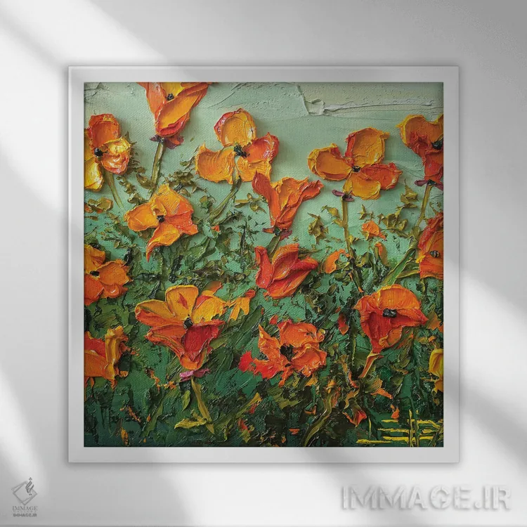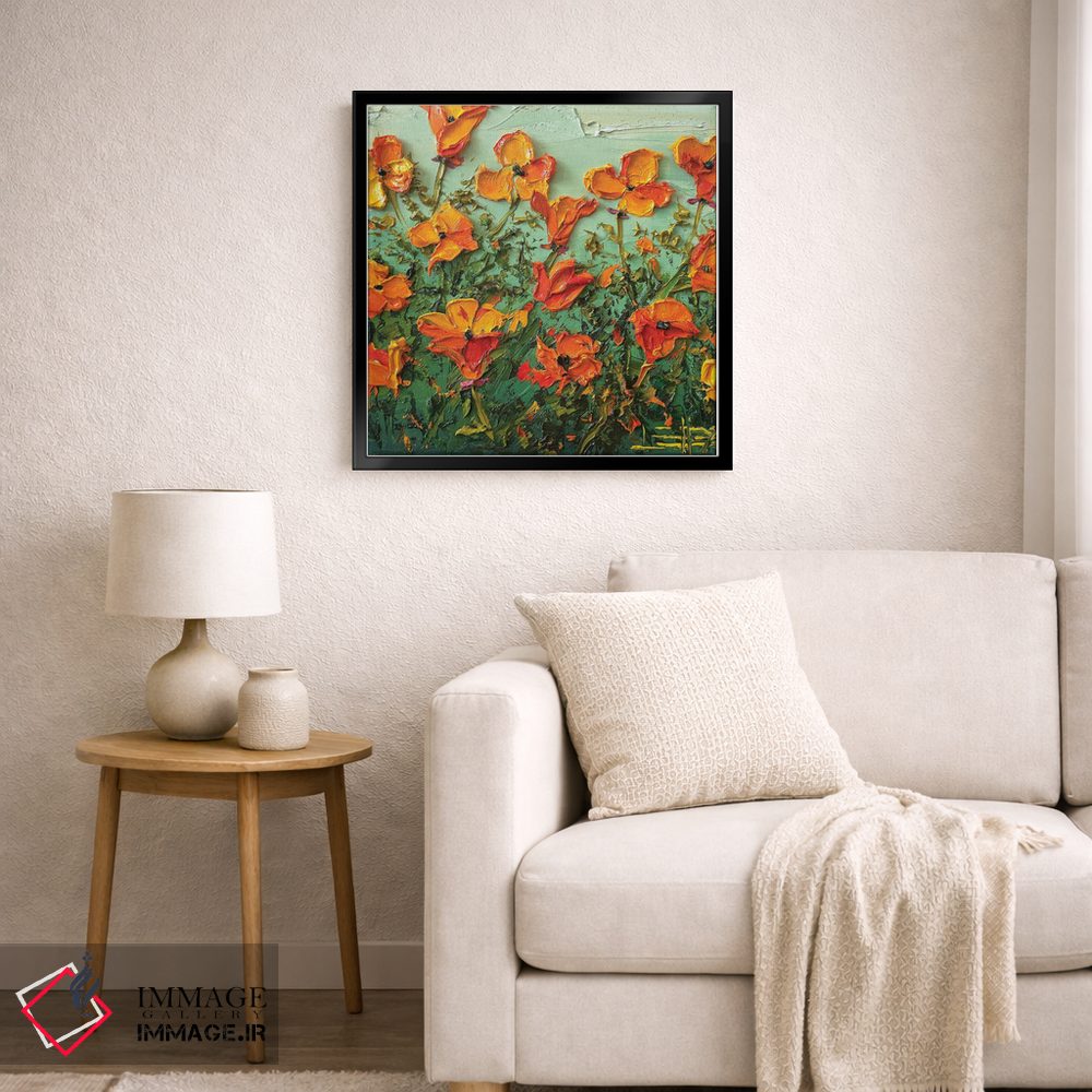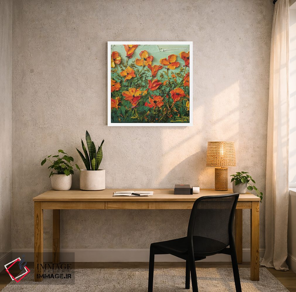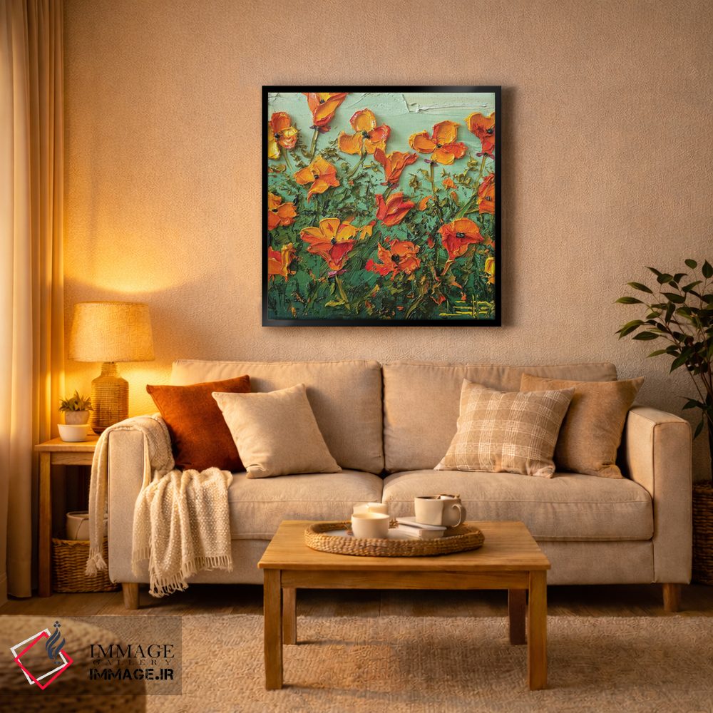 این اثر با عنوان «شکوفههای شقایق» اثرِ «لیزا الی» حس طراوت را بدون شلوغی وارد اتاق میکند؛ برای خانههایی با نور طبیعی انتخابی خوشسلیقه است. همیشه بهروز میماند و با فصلها خوب کنار میآید.