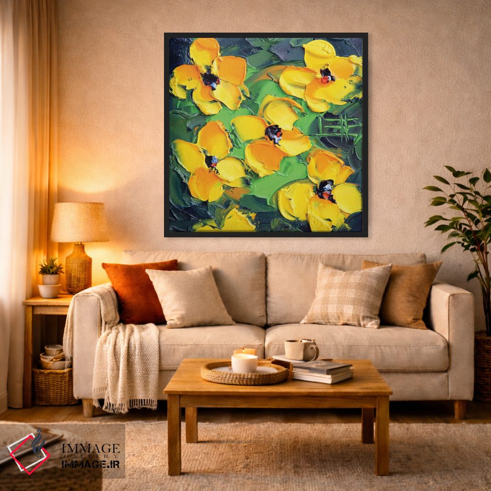 اگر به دکورهای طبیعی علاقه دارید، «شقایقهای کالیفرنیا» اثرِ «لیزا الی» تعادل رنگیِ لطیفی به چیدمان میدهد، برای کنار میز آرایش یا کنسول گزینهٔ مناسبیست. با قاب روشن یا چوبی، حس طبیعیتری پیدا میکند.
