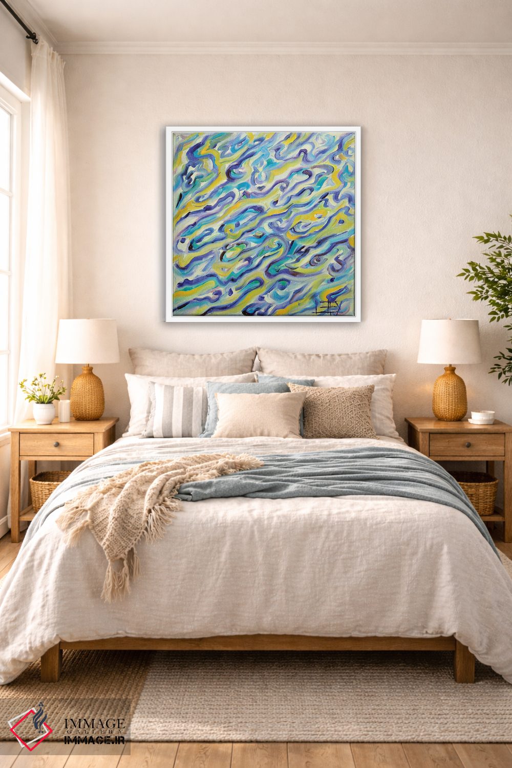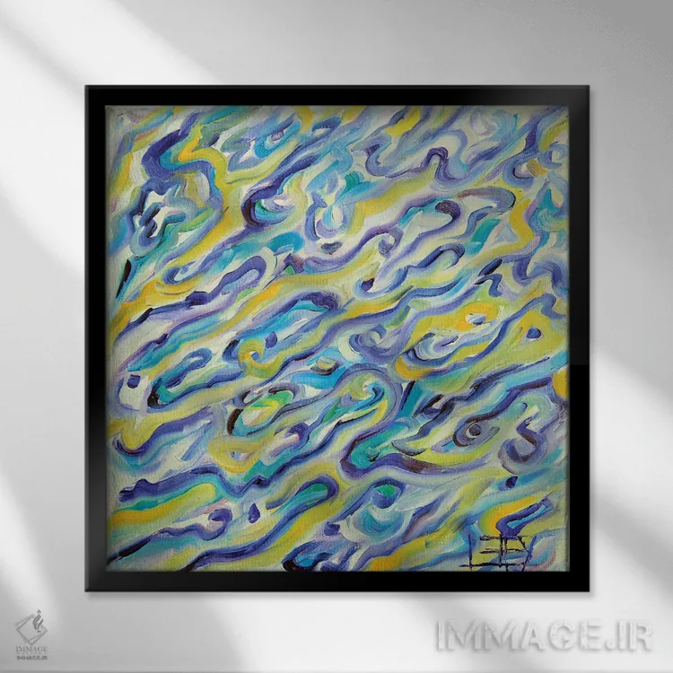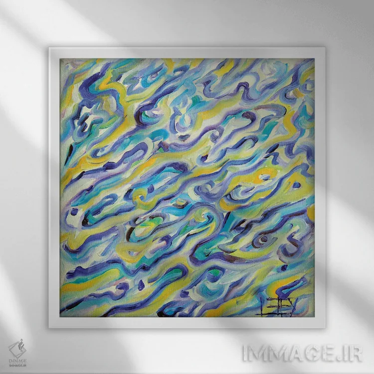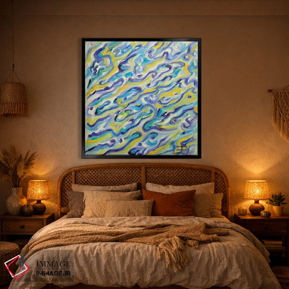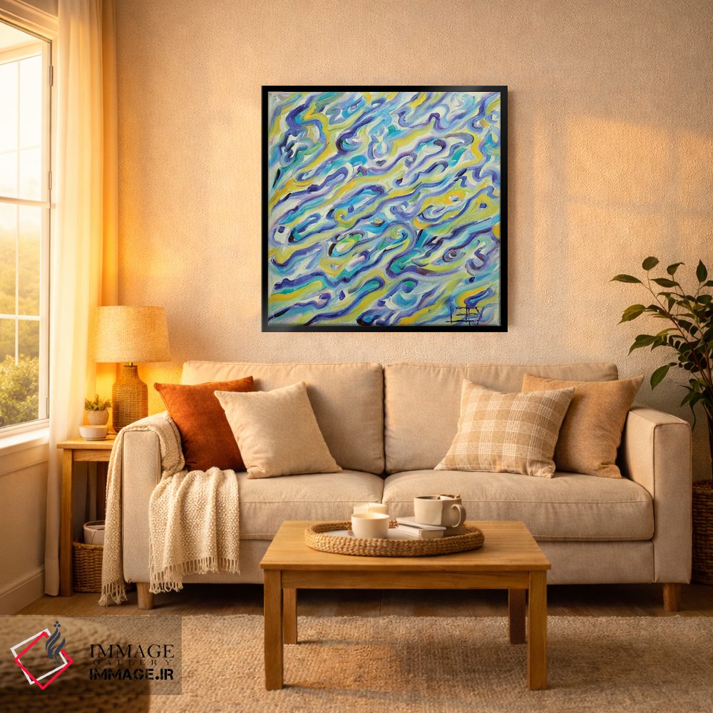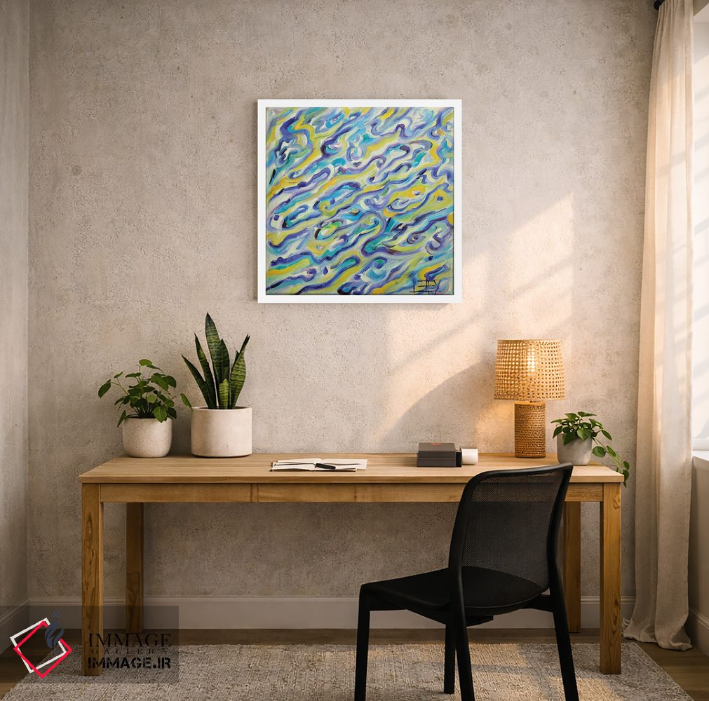 براساس پالت ترکیبی اثر، قاب تیک گرم (چوبی) پیشنهاد اول است و مشکی مات (فریم متوسط) مکمل. برای سفارشهای پروژهای با ابعاد و قابهای اختصاصی با ایماژ در تماس باشید.