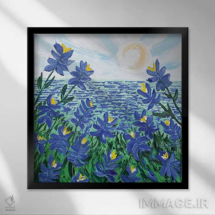براساس پالت ترکیبی اثر، قاب تیک گرم (چوبی) پیشنهاد اول است و مشکی مات (فریم متوسط) مکمل. برای سفارشهای پروژهای با ابعاد و قابهای اختصاصی با ایماژ در تماس باشید.