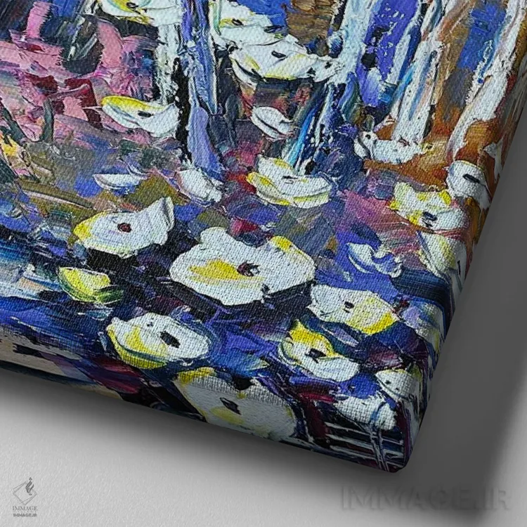 بوم گالری ایماژ طوری طراحی شده که اثر روی دیوار «پرداختشده» و حرفهای دیده شود—نه پرزرقوبرقِ بیپایه؛ بلکه دقیق و خوشپرداخت. بافت ظریف کنواس باعث میشود حس اثر هنری را در نگاه نزدیک نگه میدارد و در دکورهای مدرن و مینیمال خیلی خوب مینشیند. در قابپذیری، قاب مناسب مرز بصری تمیزتری به اثر میدهد و همین «پرداخت» تفاوت را میسازد. حاصل کار، یک تابلو خوشنشین است که هم از دور اثرگذار است و هم از نزدیک خوشخوان.