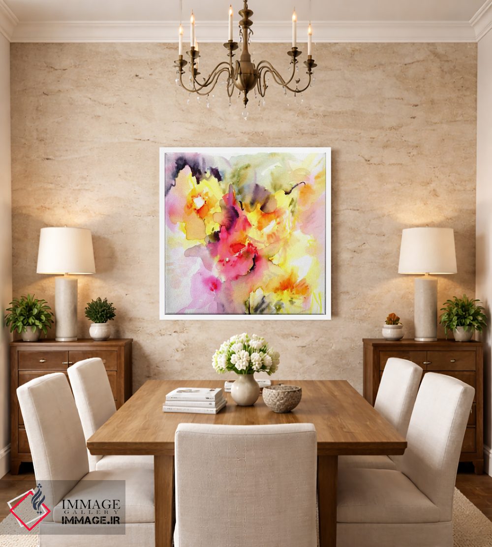 بوم گالری ایماژ طوری طراحی شده که اثر روی دیوار «پرداختشده» و حرفهای دیده شود—نه پرزرقوبرقِ بیپایه؛ بلکه دقیق و خوشپرداخت. بافت ظریف کنواس باعث میشود حس اثر هنری را در نگاه نزدیک نگه میدارد بدون اغراق؛ فقط دقیقتر. با کنترل تونها، از تند شدن ناخواستهی رنگها جلوگیری میکند و همین «پرداخت» تفاوت را میسازد. حاصل کار، یک تابلو خوشنشین است که هم از دور اثرگذار است و هم از نزدیک خوشخوان؛ و اگر بخواهید، میتوان چیدمان را برای گالریوال هم پیشنهاد داد. در دیوارهای خنثی (سفید، کرم، طوسی روشن) اثر تمیزتر خودش را نشان میدهد.