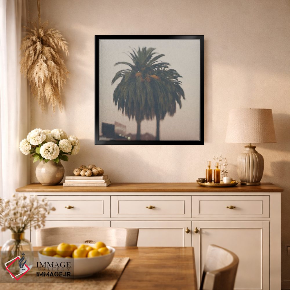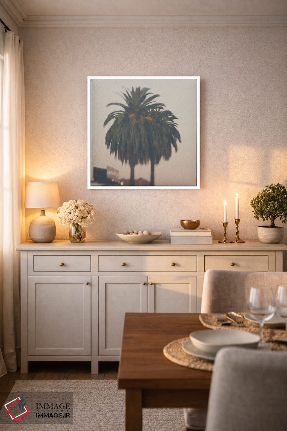 تابلو دکوراتیو درخت نخل هنگام غروب اثر لورا ایوانز