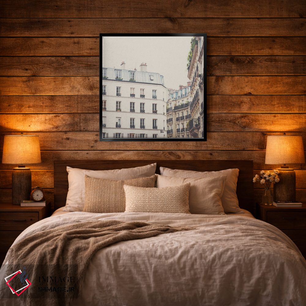 براساس پالت گرم اثر، قاب بلوط روشن (چوبی) پیشنهاد اول است و استخوانی ملایم مکمل. برای سفارشهای پروژهای با ابعاد و قابهای اختصاصی با ایماژ در تماس باشید.