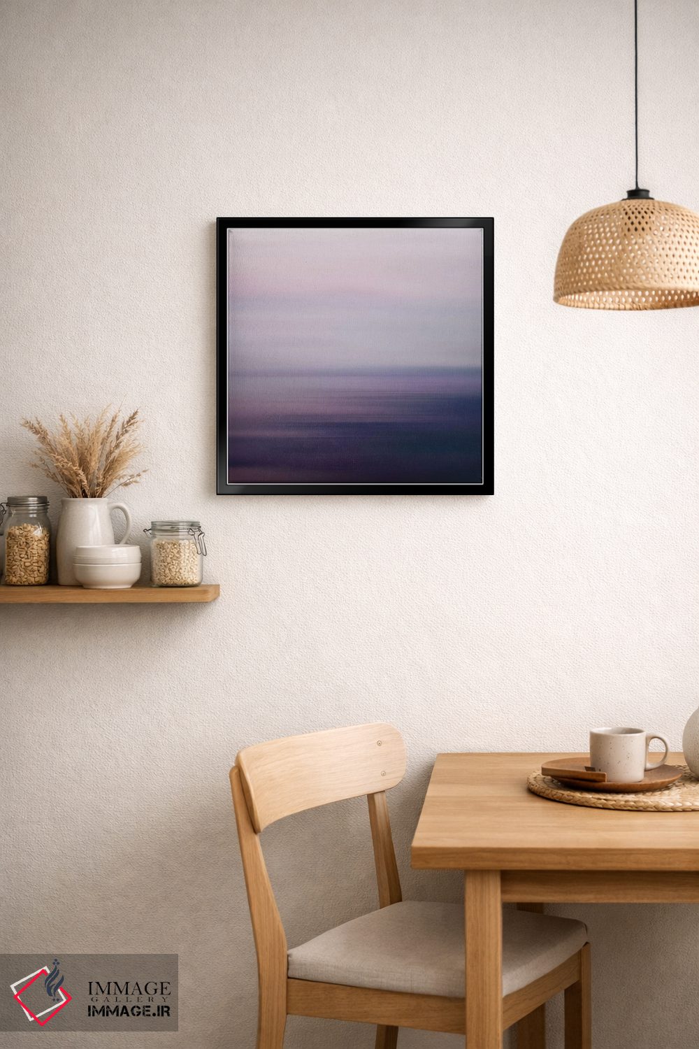 براساس پالت سرد اثر، قاب سفید مات (فریم باریک) پیشنهاد اول است و نقرهای برسخورده (متالیک) مکمل. برای سفارشهای پروژهای با ابعاد و قابهای اختصاصی با ایماژ در تماس باشید.
