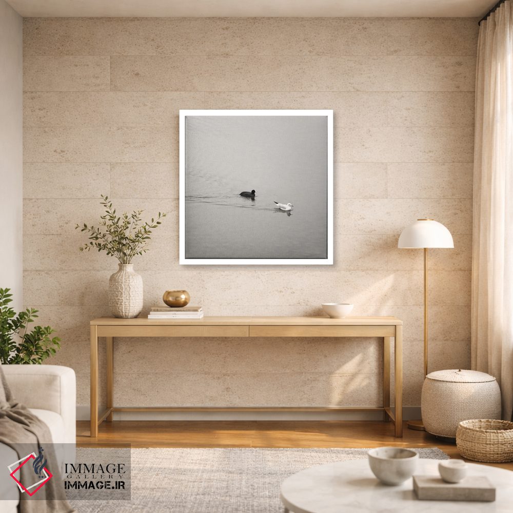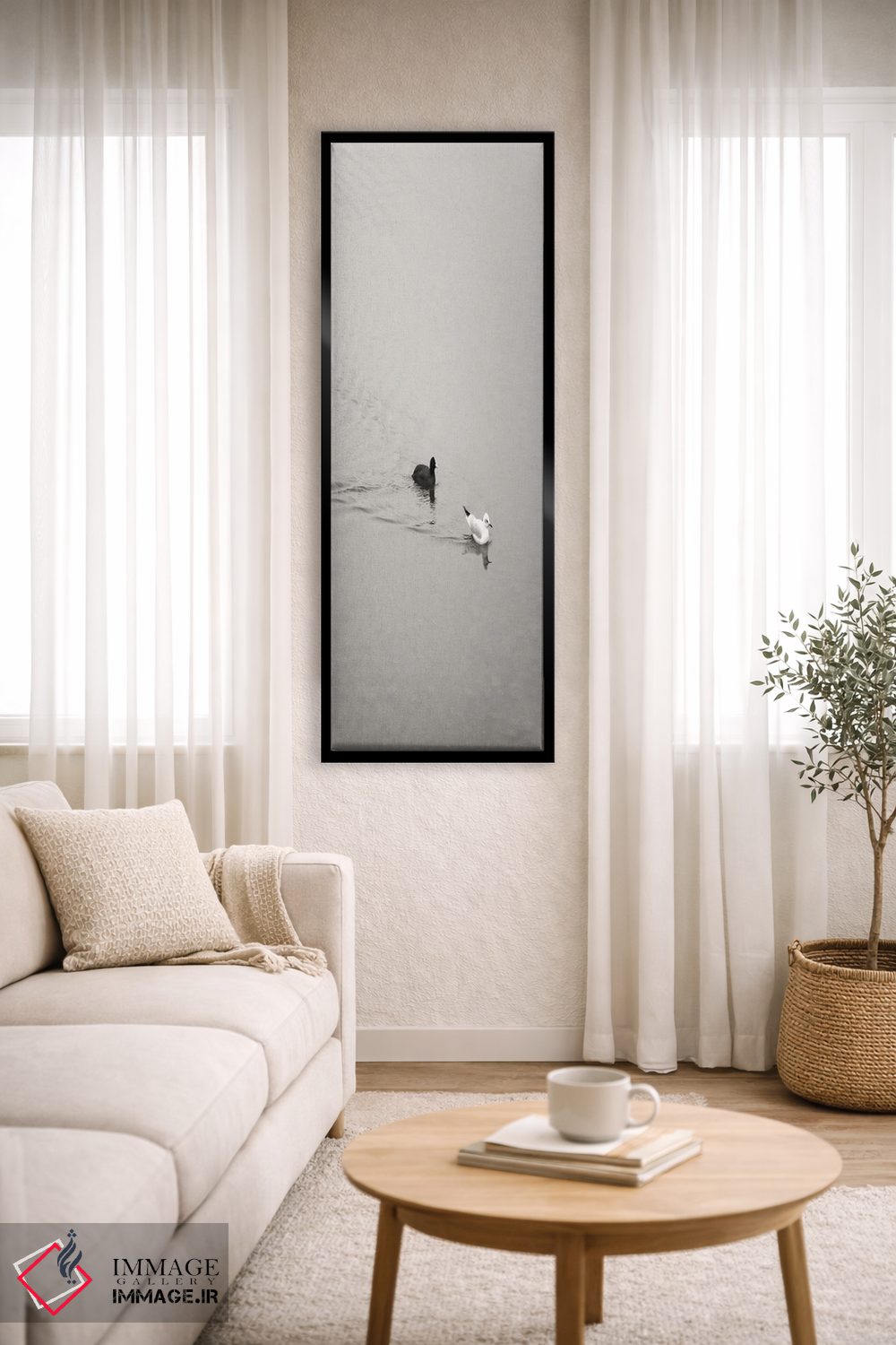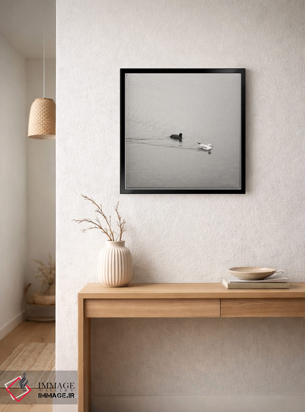 براساس پالت خنثی اثر، قاب مشکی مات (فریم باریک) پیشنهاد اول است و سفید مات (فریم باریک) مکمل. برای سفارشهای پروژهای با ابعاد و قابهای اختصاصی با ایماژ در تماس باشید.