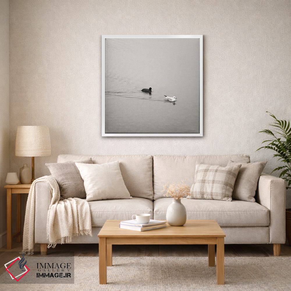ساختار بوم گالری ایماژ طوری است که اثر روی دیوار «پرداختشده» و حرفهای دیده شود—نه پرزرقوبرقِ بیپایه؛ بلکه دقیق و خوشپرداخت. بافت ظریف کنواس باعث میشود حس اثر هنری را در نگاه نزدیک نگه میدارد. با قابپذیری، قاب مناسب مرز بصری تمیزتری به اثر میدهد و در چیدمانهای مدرن و کمینهگرا خیلی خوب مینشیند. این کیفیت برای دکورهای دقیقتر و پروژههای حرفهای خودش را بهتر نشان میدهد؛ و اگر بخواهید، میتوان چیدمان را برای گالریوال هم پیشنهاد داد. در دیوارهای خنثی (سفید، کرم، طوسی روشن) اثر تمیزتر خودش را نشان میدهد.
