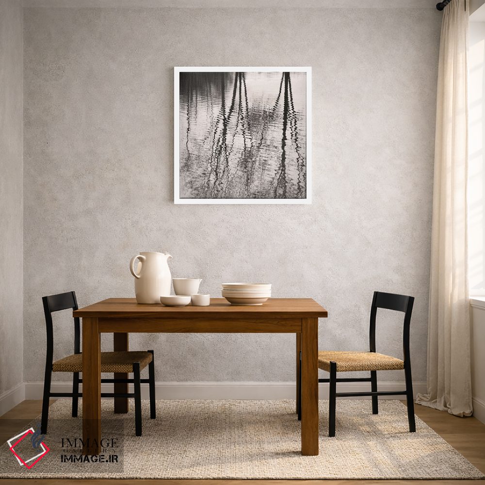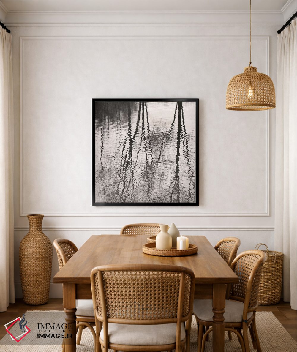 برای دیواری که میخواهید نرمتر دیده شود، «بازتاب» اثرِ «لنا وایسبک» چیدمان را از خشکی بیرون میآورد؛ برای اتاق خواب انتخابی خوشسلیقه است. اگر دنبال «زیباییِ بیصدا» هستید، این اثر همان حس را دارد.