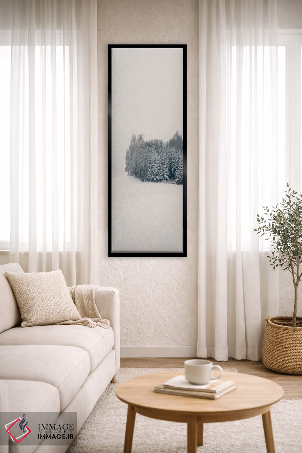 براساس پالت خنثی اثر، قاب مشکی مات (فریم باریک) پیشنهاد اول است و سفید مات (فریم باریک) مکمل. برای سفارشهای پروژهای با ابعاد و قابهای اختصاصی با ایماژ در تماس باشید.