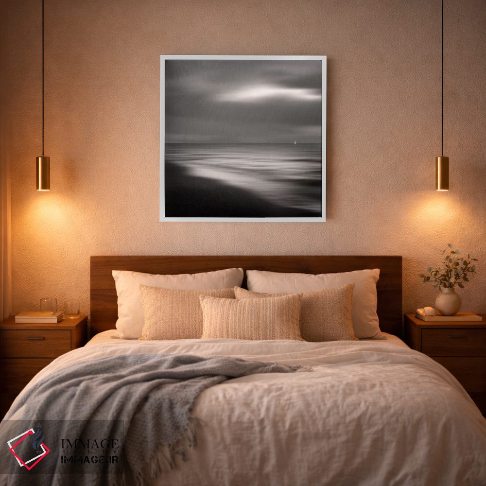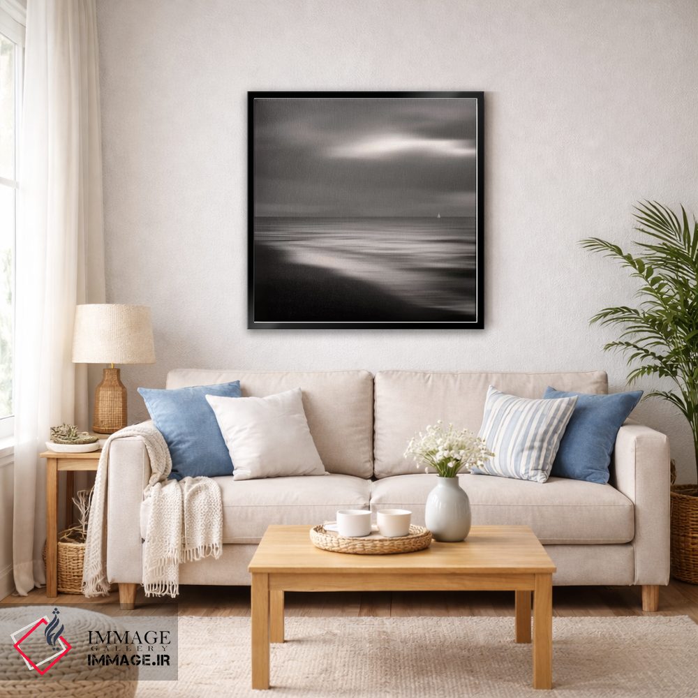 براساس پالت خنثی اثر، قاب مشکی مات (فریم باریک) پیشنهاد اول است و سفید مات (فریم باریک) مکمل. برای سفارشهای پروژهای با ابعاد و قابهای اختصاصی با ایماژ در تماس باشید.