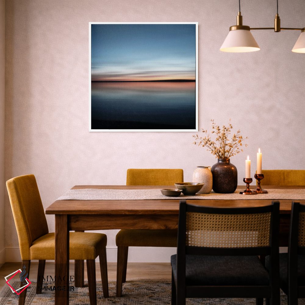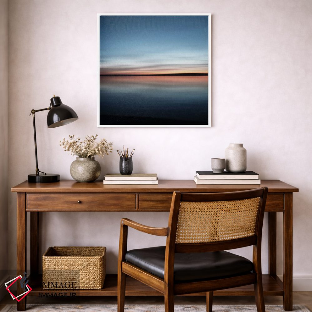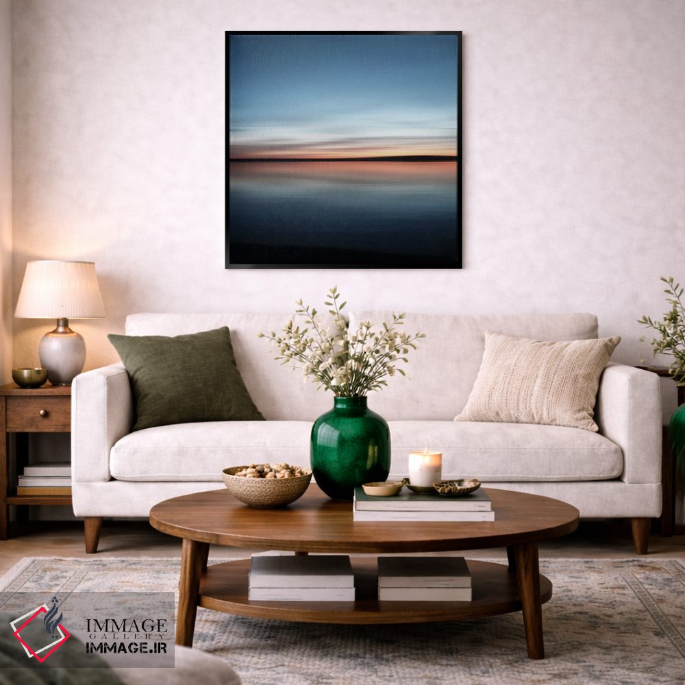 «آنجا که دریا با آسمان تلاقی میکند» اثرِ «لنا وایسبک» از آن انتخابهاییست که به چیدمان، عمق و وقار میدهد؛ برای فضاهایی با نور طبیعی انتخابی عالی است. فضا را شلوغ نمیکند؛ فقط دقیقترش میکند.