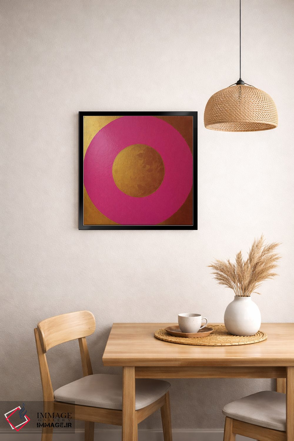 براساس پالت گرم اثر، قاب تیک گرم (چوبی) پیشنهاد اول است و مشکی مات (فریم متوسط) مکمل. برای سفارشهای پروژهای با ابعاد و قابهای اختصاصی با ایماژ در تماس باشید.
