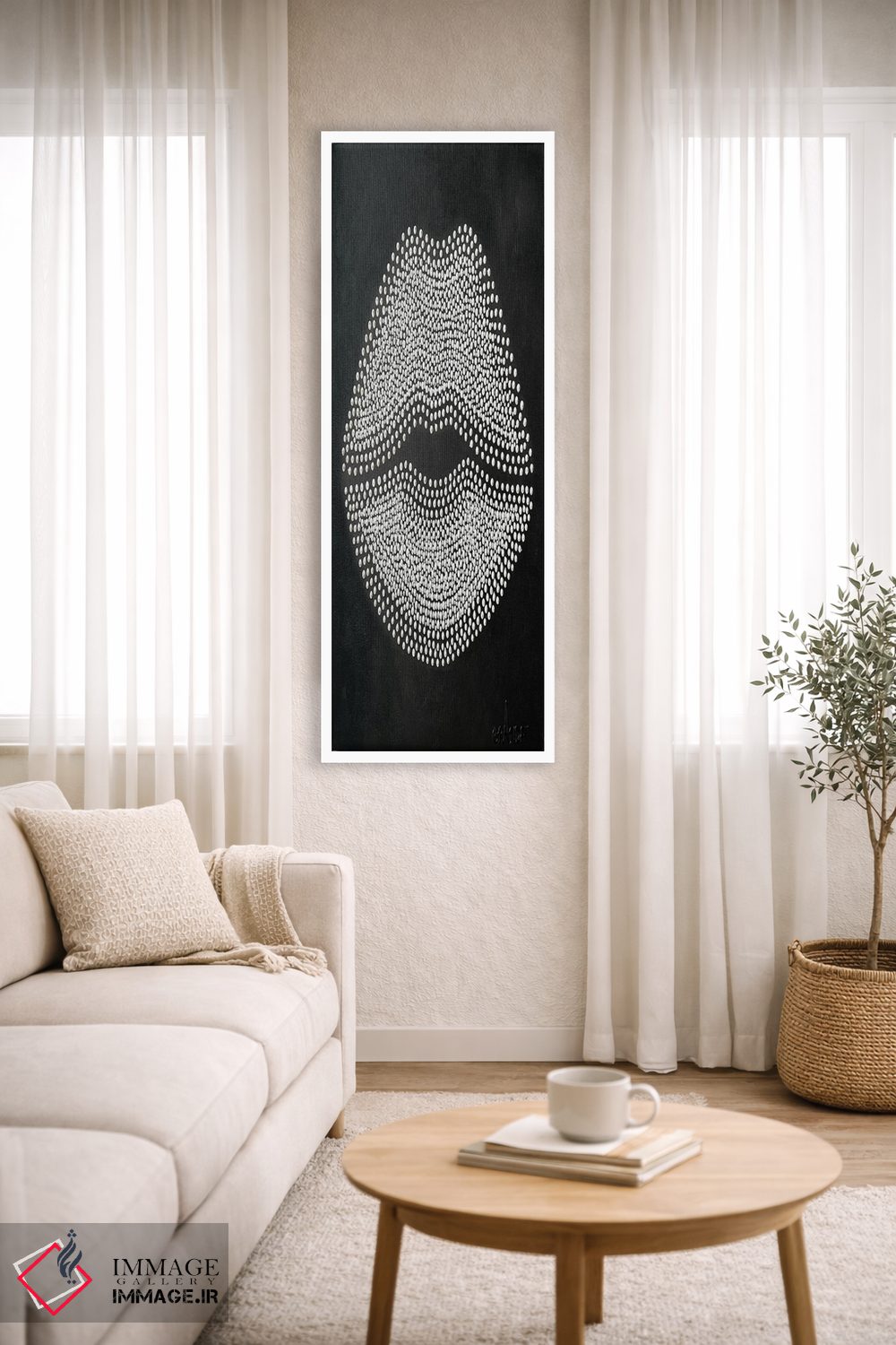 براساس پالت خنثی اثر، قاب مشکی مات (فریم باریک) پیشنهاد اول است و سفید مات (فریم باریک) مکمل. برای سفارشهای پروژهای با ابعاد و قابهای اختصاصی با ایماژ در تماس باشید.
