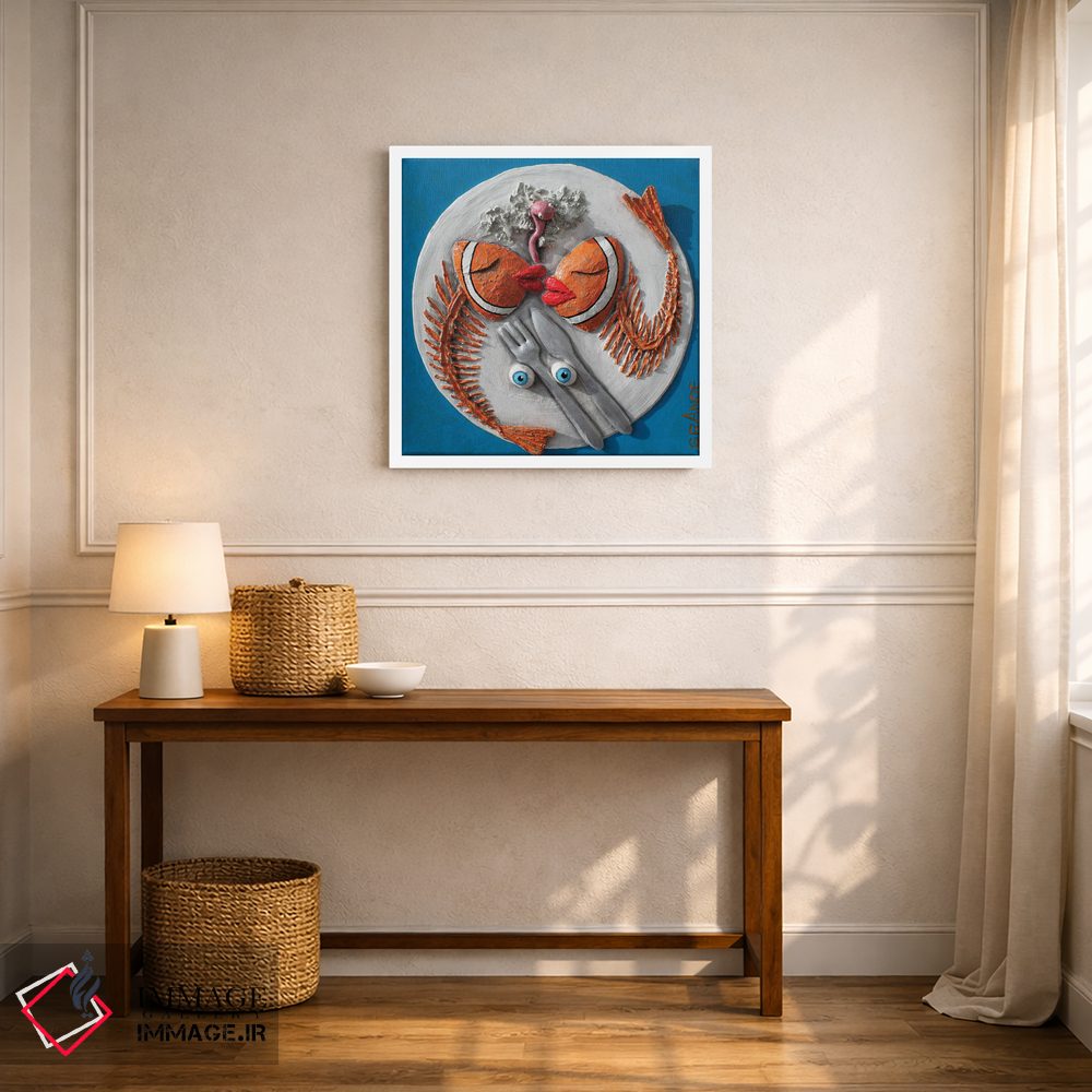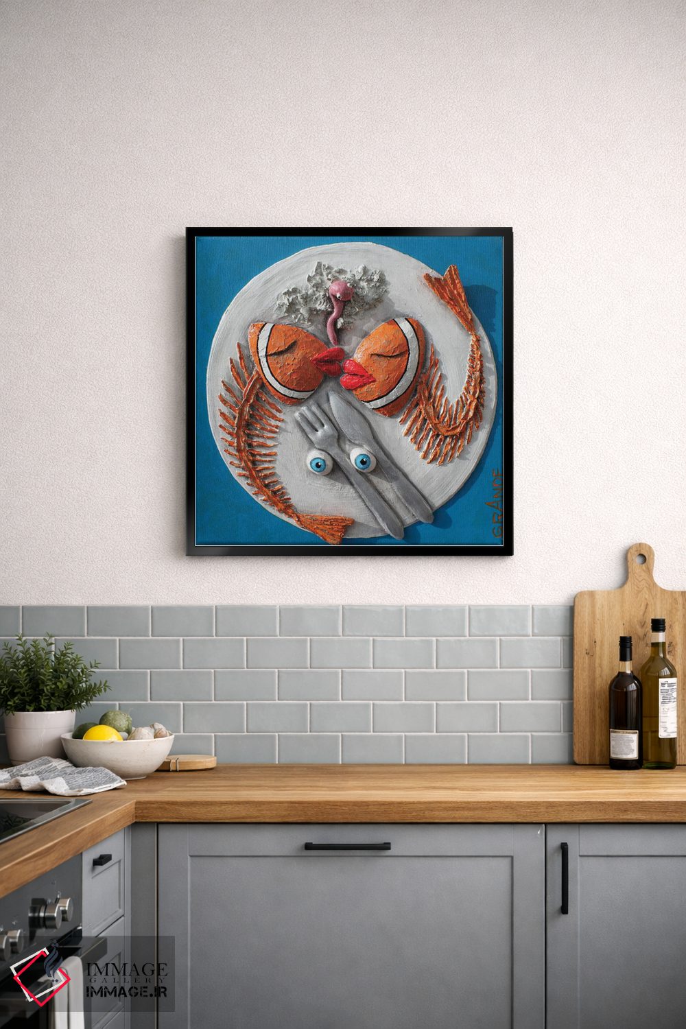 تابلو دکوراتیو ماهی با زیتون اثر آلا گرانده - نمای روبه‌رو روی دیوار