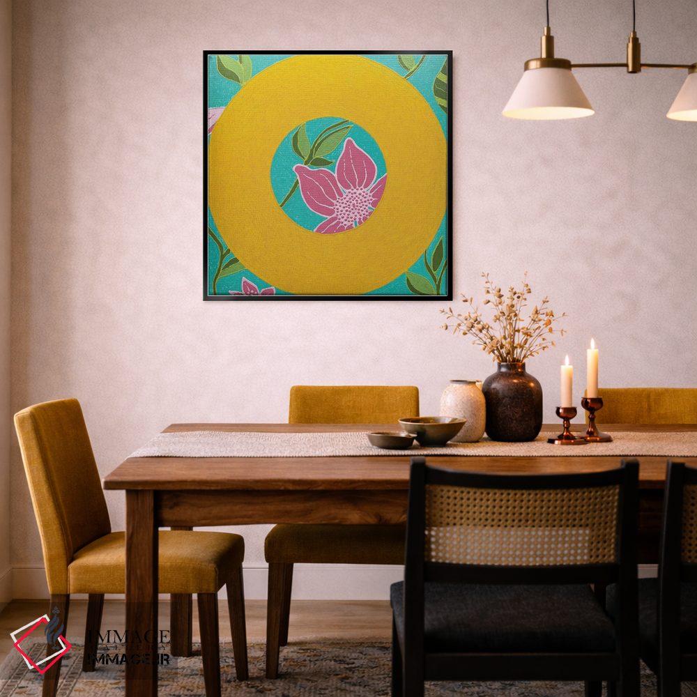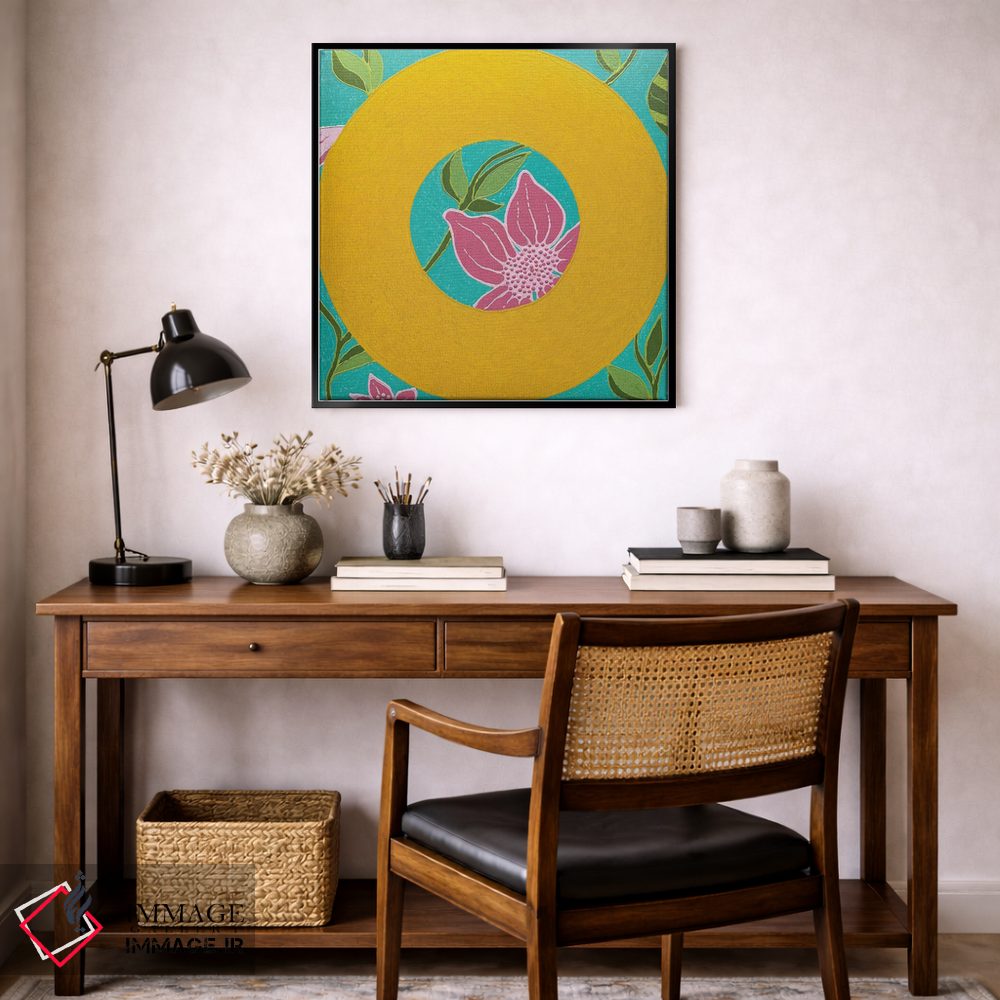 براساس پالت ترکیبی اثر، قاب تیک گرم (چوبی) پیشنهاد اول است و مشکی مات (فریم متوسط) مکمل. برای سفارشهای پروژهای با ابعاد و قابهای اختصاصی با ایماژ در تماس باشید.