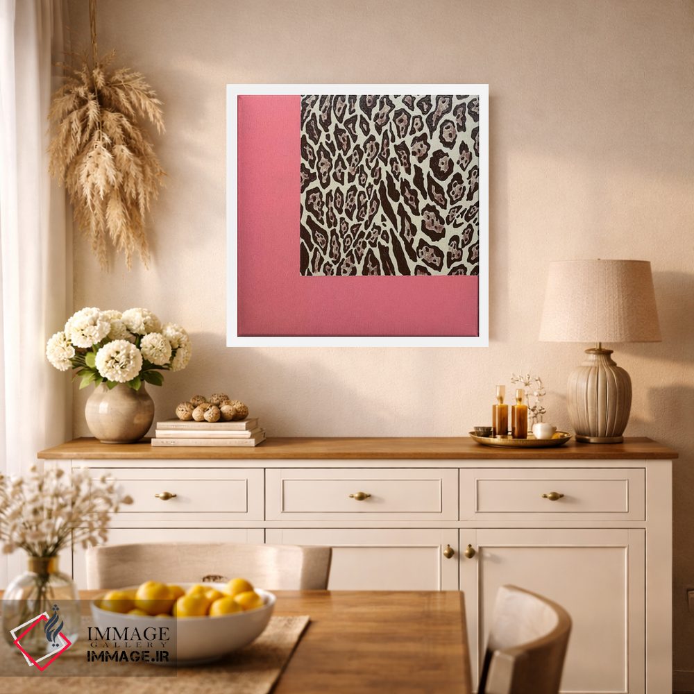 براساس پالت گرم اثر، قاب بلوط روشن (چوبی) پیشنهاد اول است و استخوانی ملایم مکمل. برای سفارشهای پروژهای با ابعاد و قابهای اختصاصی با ایماژ در تماس باشید.