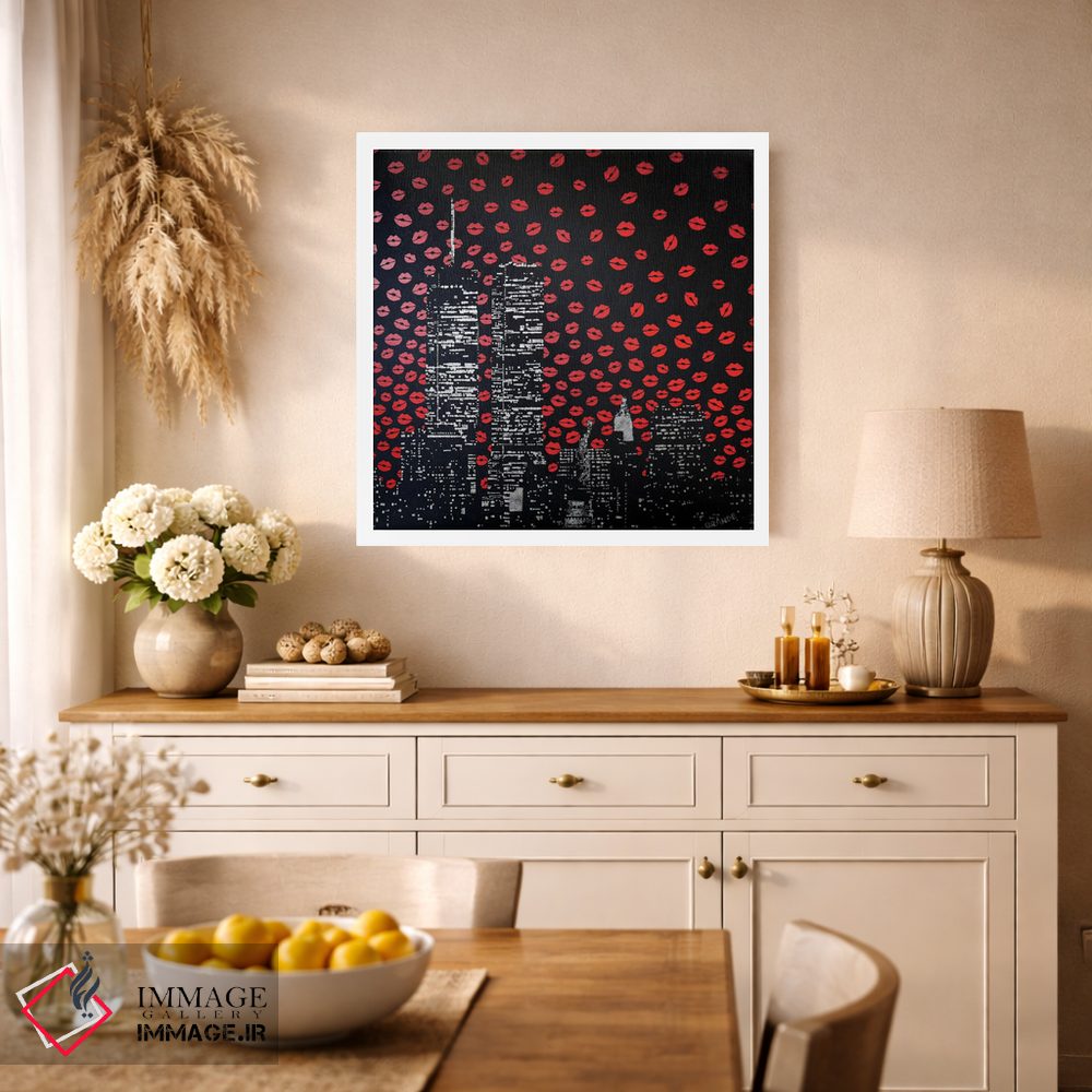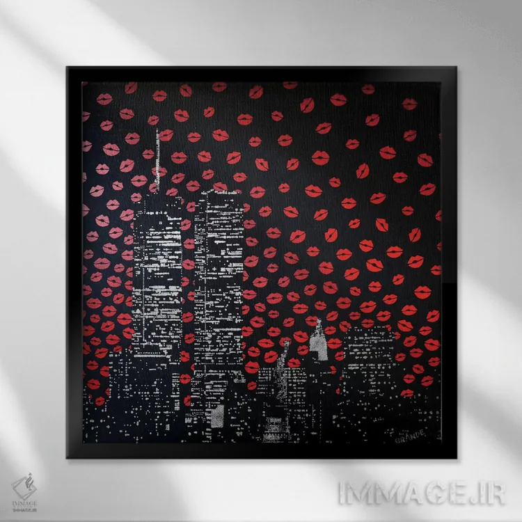 تابلو دکوراتیو بوسه های عاشقانه بر فراز نیویورک اثر آلا گرانده