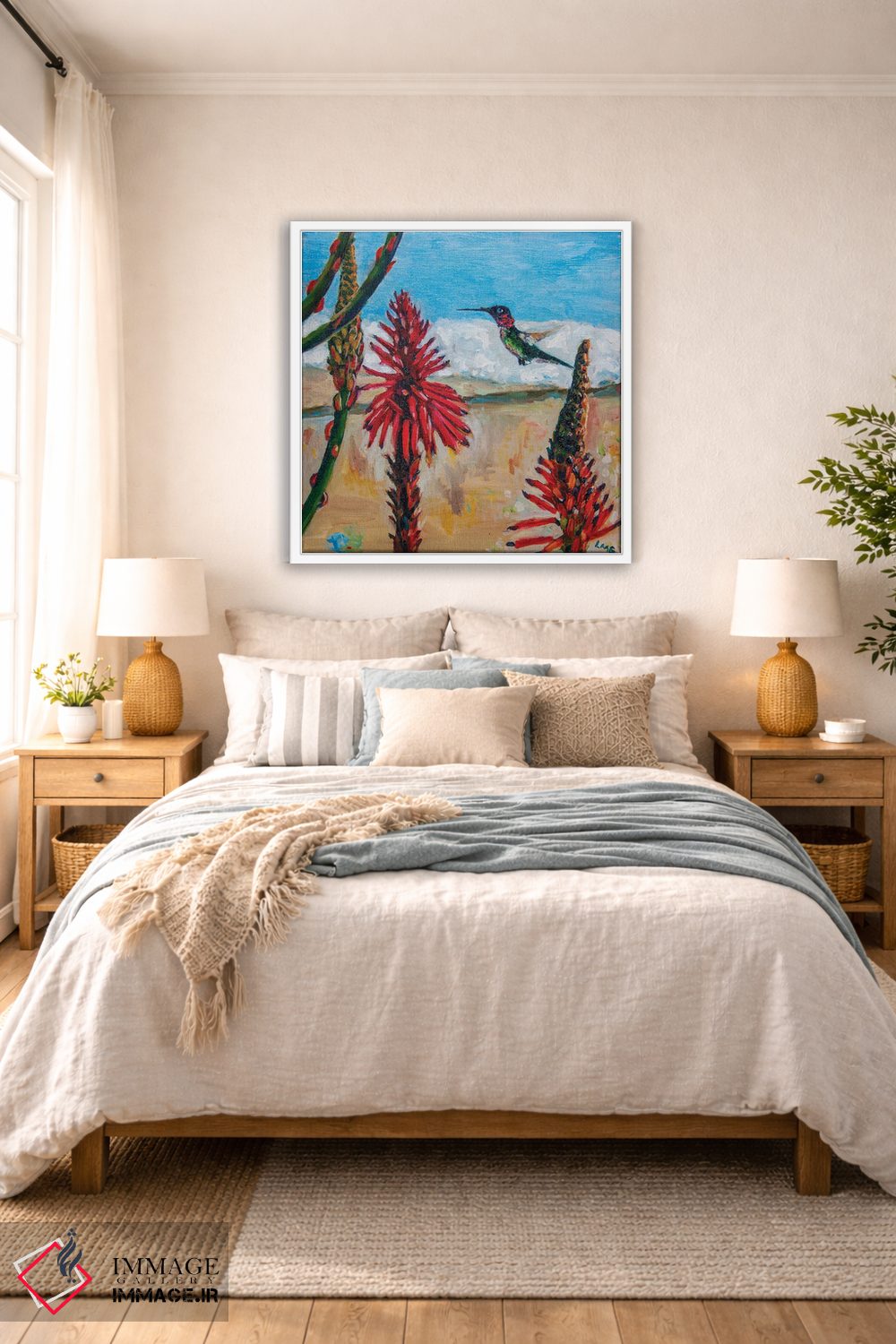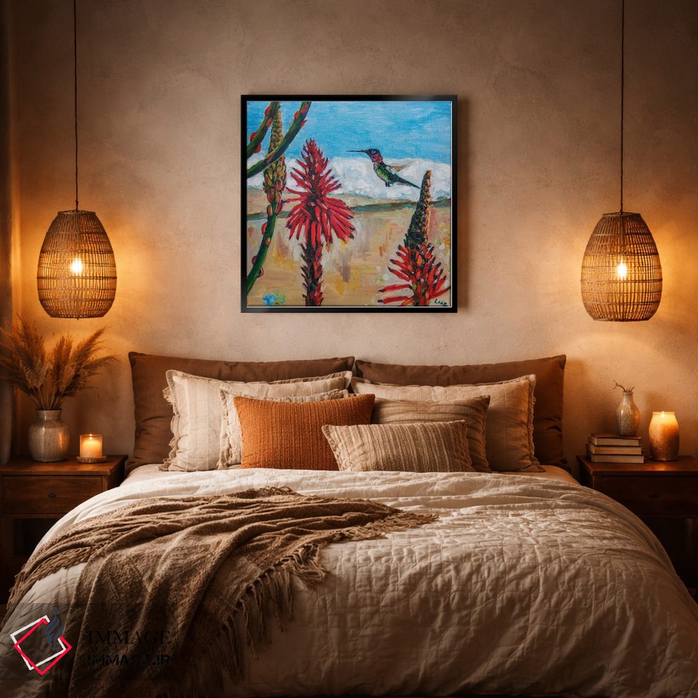 «مرغ مگسخوار آنا در سانتا مونیکا» اثرِ «لیزا گلدفارب» از آن انتخابهاییست که یک حس «تمامشده و پرداختشده» ایجاد میکند؛ برای دکورهای کلاسیک با چوب و پارچه انتخابی عالی است. هم از دور چشمگیر است و هم از نزدیک پرداخت دارد.