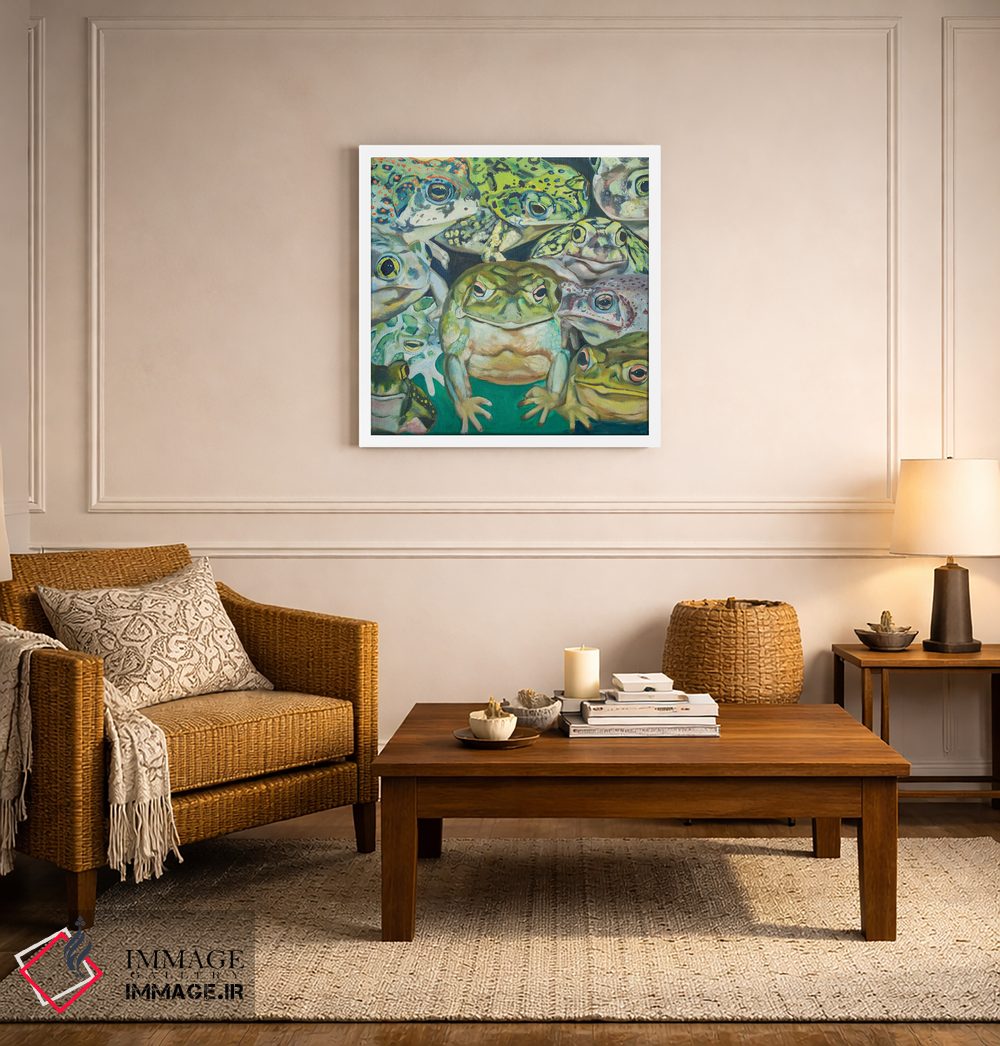 برای اتاقی که به یک عنصر دوستداشتنی نیاز دارد، «تهاجم وزغها» اثرِ «لیزا گلدفارب» به فضا، گرمیِ ملایم اضافه میکند؛ برای کافههای کوچک و صمیمی انتخابی خوشسلیقه است. در کنار گیاهان و نور طبیعی، جذابتر هم میشود.